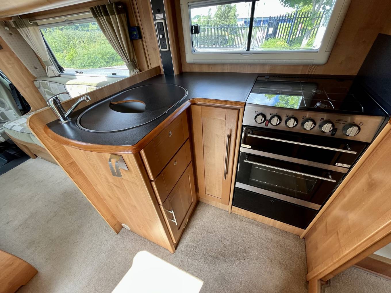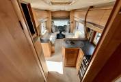 If you enjoy cooking you'll love the kitchen which has everything you need to rustle up a gastronomic treat. There is an oven and grill, a dual hob with 3 gas burners and 1 electric hotplate, a microwave, a huge 180 litre Thetford fridge freezer, a sink with mixer tap and plenty of drawer space to store your ingredients and utensils.