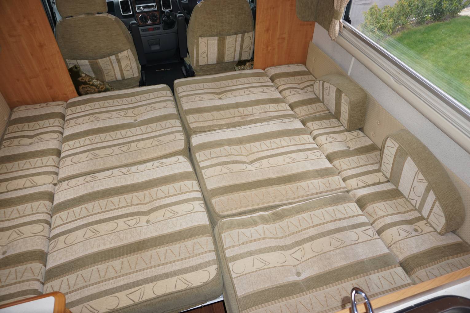 To the front of the vehicle are two large bench seats that easily convert into a large double bed. Above the cab is the second double bed to complete the 6 berths. It is classic Autotrail styling and finish with all appliances in good working order.
