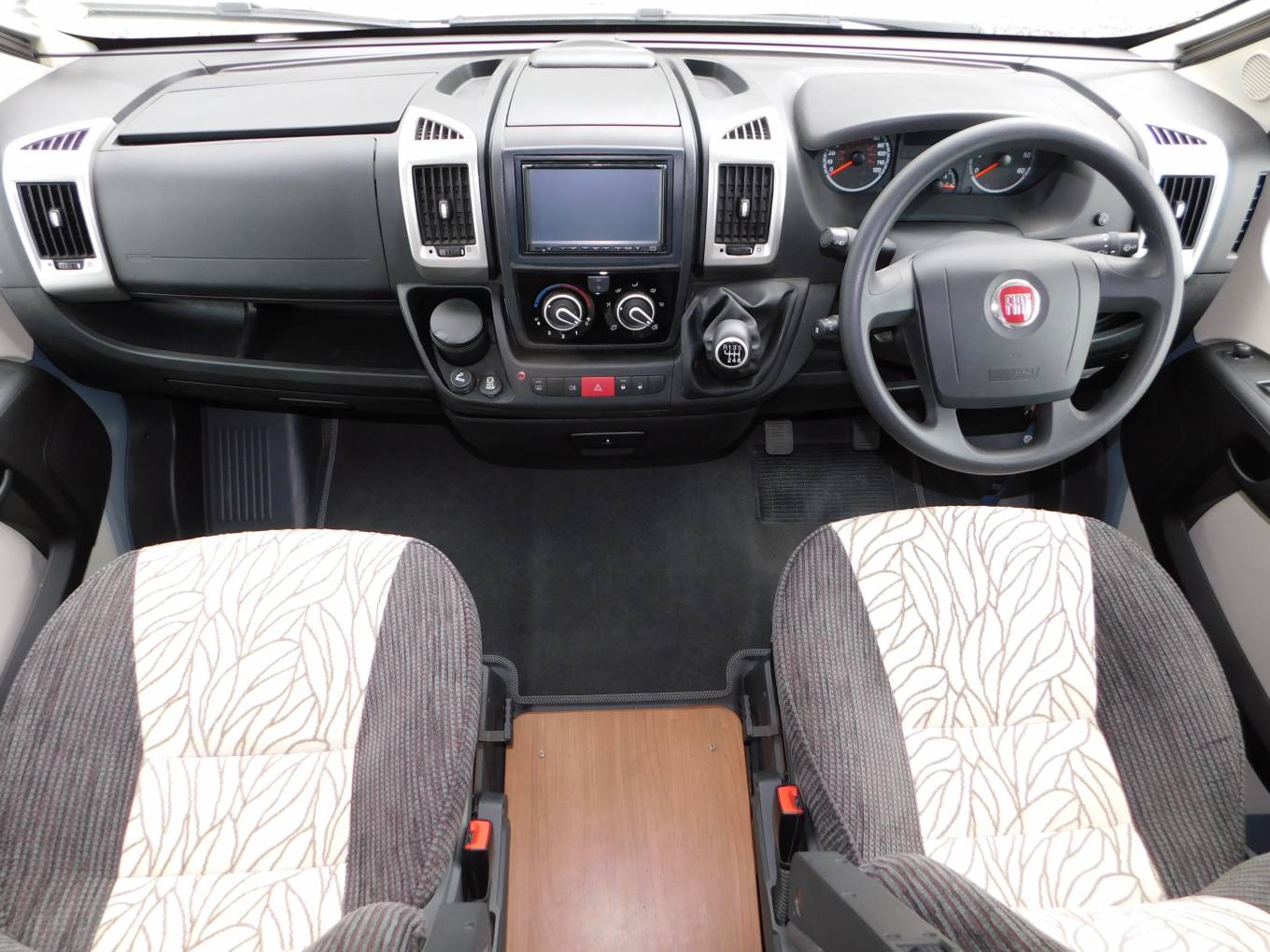 The cab has a media entertainment centre, which incorporates sat nav, Bluetooth phone, CD player, Radio and a DVB TV tuner, there is a drop down TV where the locking clip requires attention, swivelling seats, air conditioning, cruise control, electric windows, mirrors and central locking. Built-in privacy blinds fitted to the front window and cab side windows, a Cobra Thatcham Cat 1 alarm system and a Cobra Tracker is also fitted, subscription required.