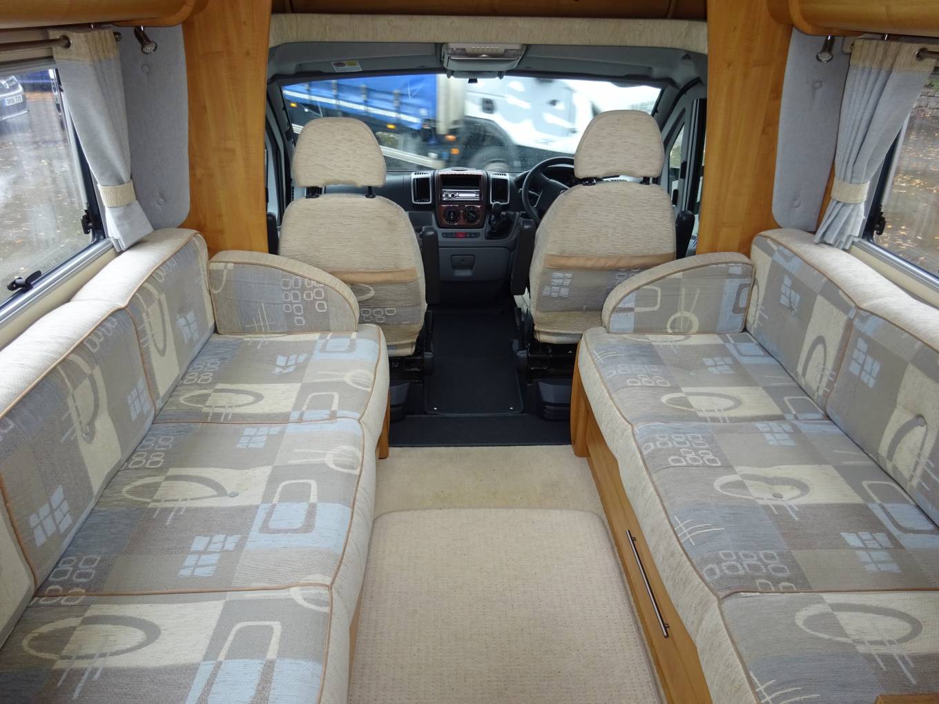 Based on the Fiat Ducato 35 multijet LWB with 2287cc 130 diesel engine and 6 speed manual gearbox. In the cab we have air conditioning and cruise control, pleated window blinds, electric front windows and mirrors and a JVC CD/radio. Outside we have a large wind out awning with light, external shower point & fitment, a useful locker on the nearside front and on the off side there is a good size upright locker which has the battery for the diesel heater. Still on this side is the good size pull out locker which contains the hook up cable, ramps and water hose, included. The spare wheel is mounted in a cover, a fold up ladder gives access to the roof where the Solar Panels are mounted (1 x 80w 1 x 140w). Finally at the rear is the garage which can be accessed from either side. The doors are approx 29" x 42". The large garage with access from both sides make this motorhome ideal for a bike enthusiast. The weight permitted in the garage is 250 kg. A useful motorbike ramp is included. There is a Cobra alarm and immobiliser. A telemetrics tracker if fitted and "live" believed to be transferable. Cambelt changed at 19506 miles, MOT till October 2021. New clutch fitted November.
