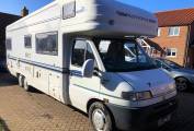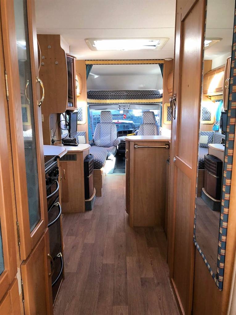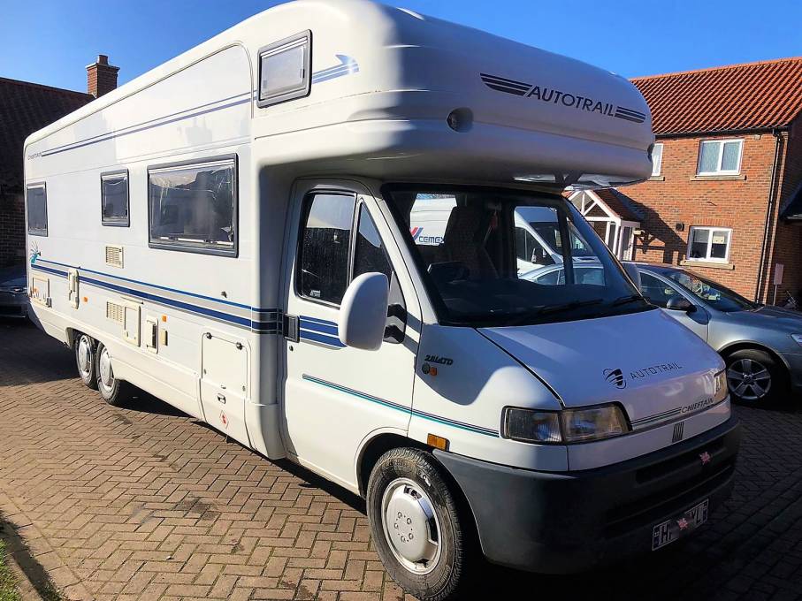 Please call with any questions on 01423 609985. This is a superb example of a coachbuilt, 5 berth, tag axle Autotrail Chieftain that is finished to the highest standard. Standout features on this campervan include the rear bed, with plenty of storage and the front lounge which has beautifully cared for upholstery, which has an L shape sofa and then opposite a bench seat. It has good service history, MOT until Feb 2021, the excellent Fiat 2800cc engine, weighs only 4500kg and comes with 4 new tyres and Safari room. At the rear is the double transverse bed that has plenty of storage surrounding. The generous washroom has a toilet and sink plus a separate shower cubicle. In the kitchen there is a cooker with 3 gas burners, electric hob, oven, grill plus sink and fridge all complimented again with plenty of storage. The front lounge has a L shape sofa on the offside and a bench sofa opposite which are well presented and the whole lounge and relaxing experience is enhanced by the 2 swivel seats in the cab. Above the cab the overcab bed is cavernous. It benefits from, 2 solar panels, 2 leisure batteries so wild camping is very achievable, immobiliser, reversing camera and awning. It is in excellent condition and can be viewed near York. Part exchanges are welcomed on this vehicle, for further information please call us on 01423 609985 quoting reference number 120479