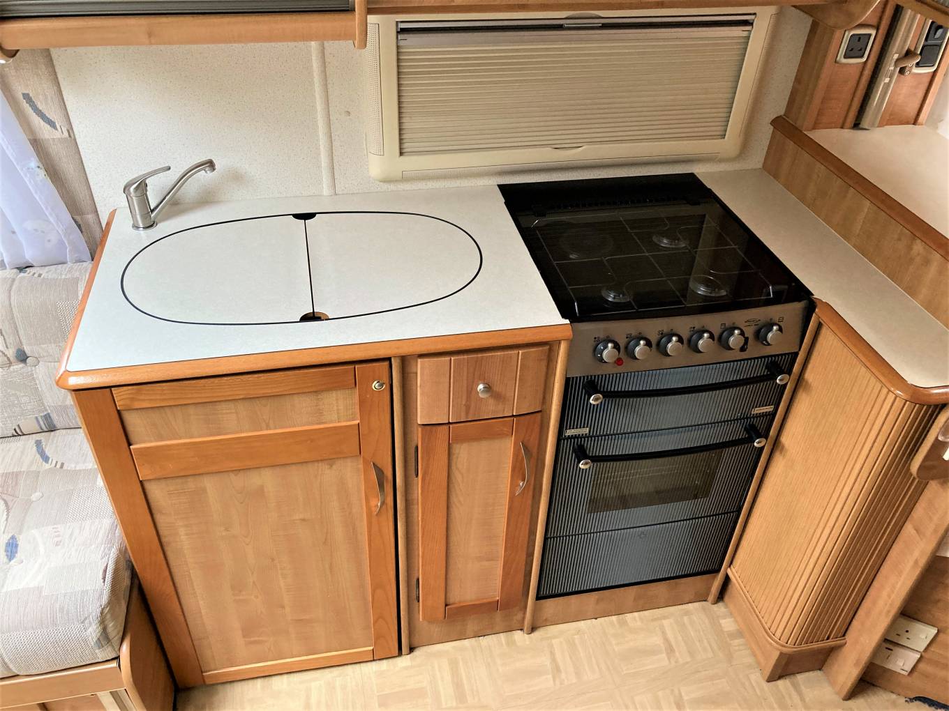 The Dakota comes with 1 front seat swivel which opens up the front lounge to create a spacious living area. The kitchen has full oven, microwave, hot and cold water and a three way fridge/freezer. The corner fixed bed has an enormous amount of storage underneath and the bathroom has a separate shower.