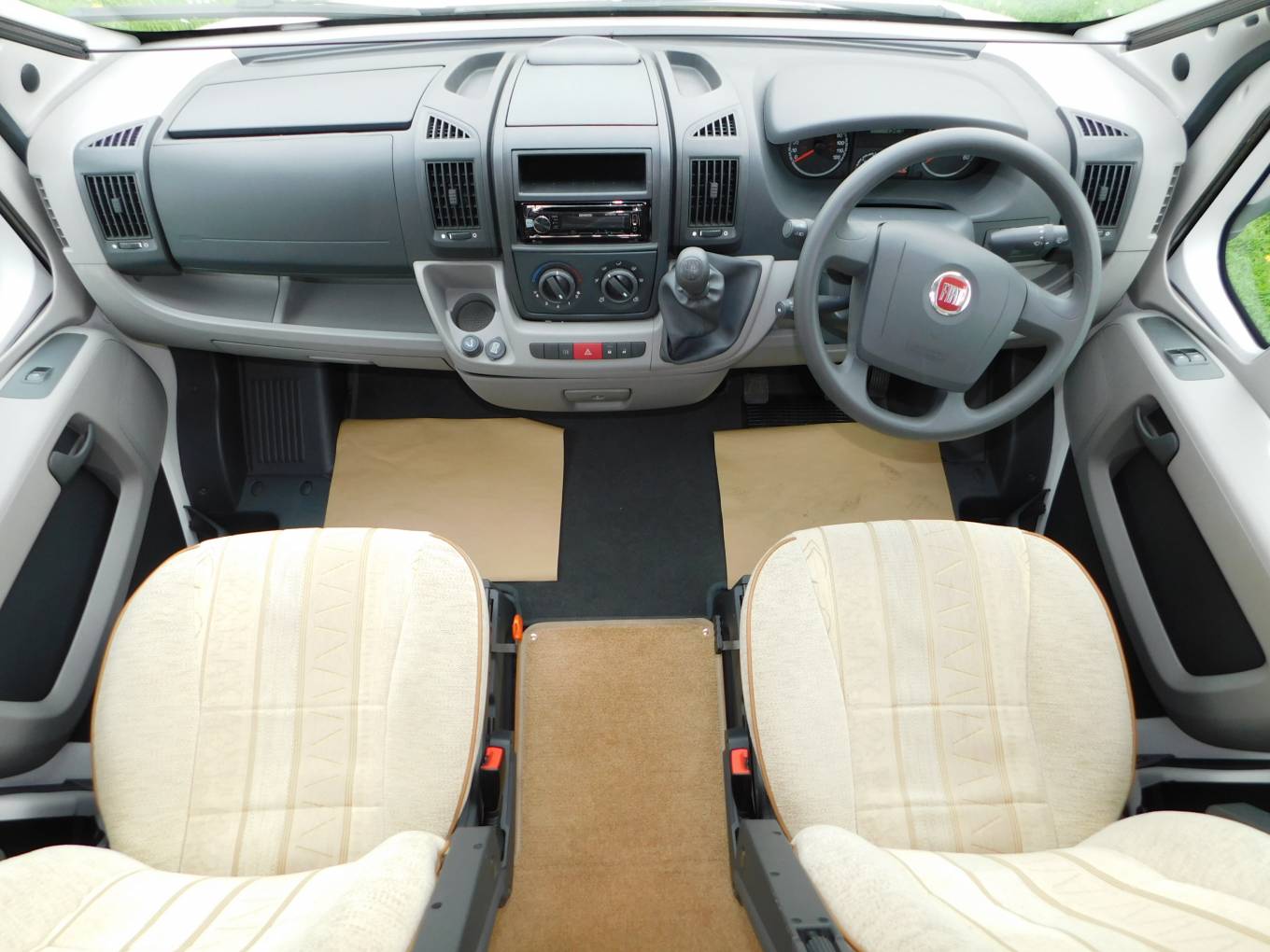 The cab has two swivelling seats, a Kenwood CD Tuner with USB and iPod input, Cruise Control,