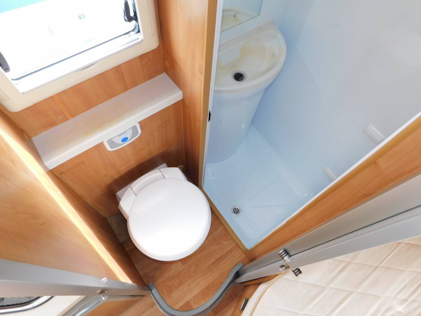 are folding Perspex doors to keep the water away from the Thetford cassette