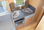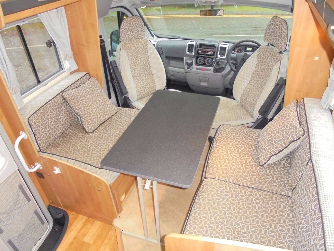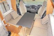 The front lounge incorporates the 2 front swivel seats which enlarges the usable space making a comfortable spacious open plan lounge which can also quickly and easily be converted into an ample double bed.