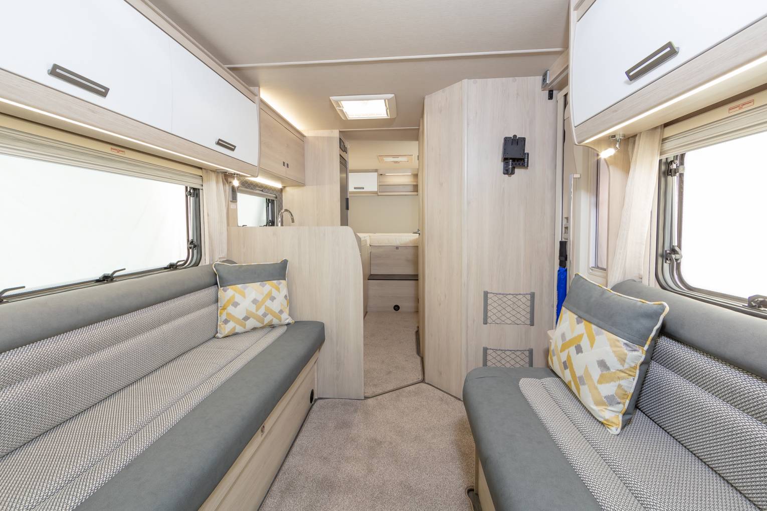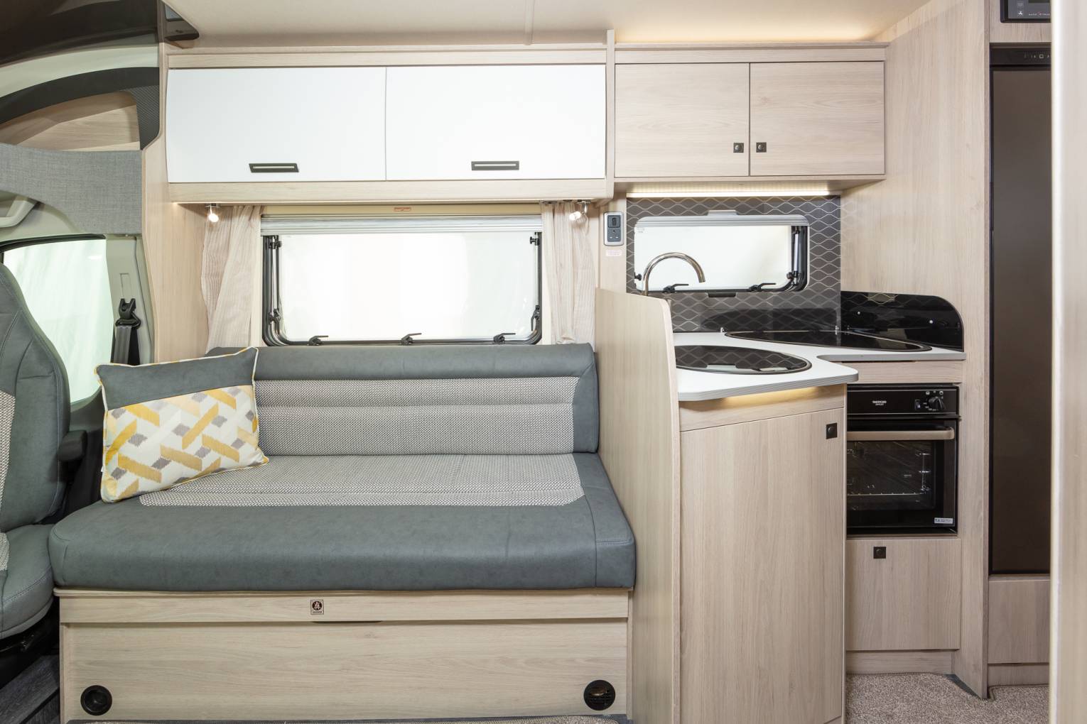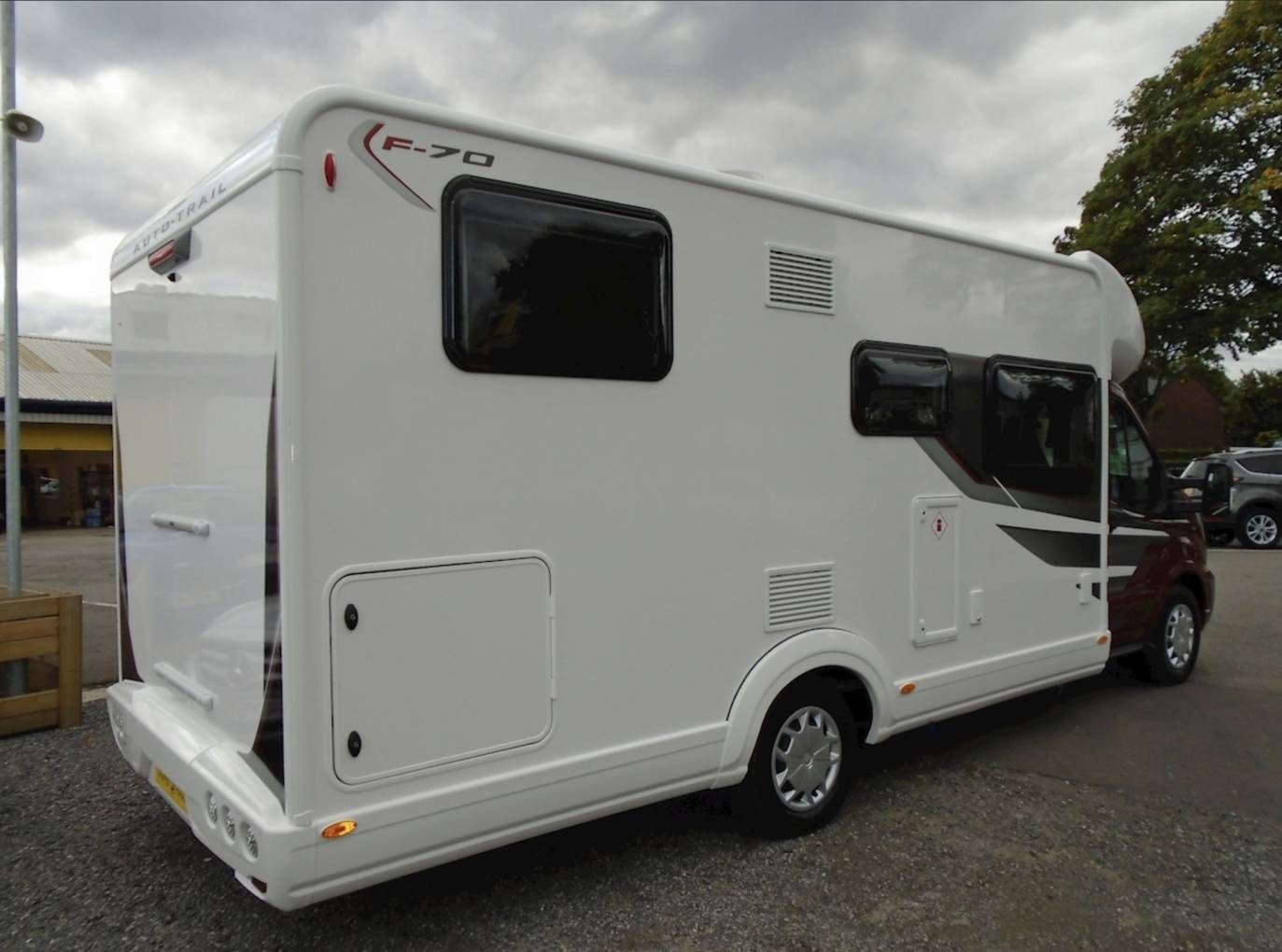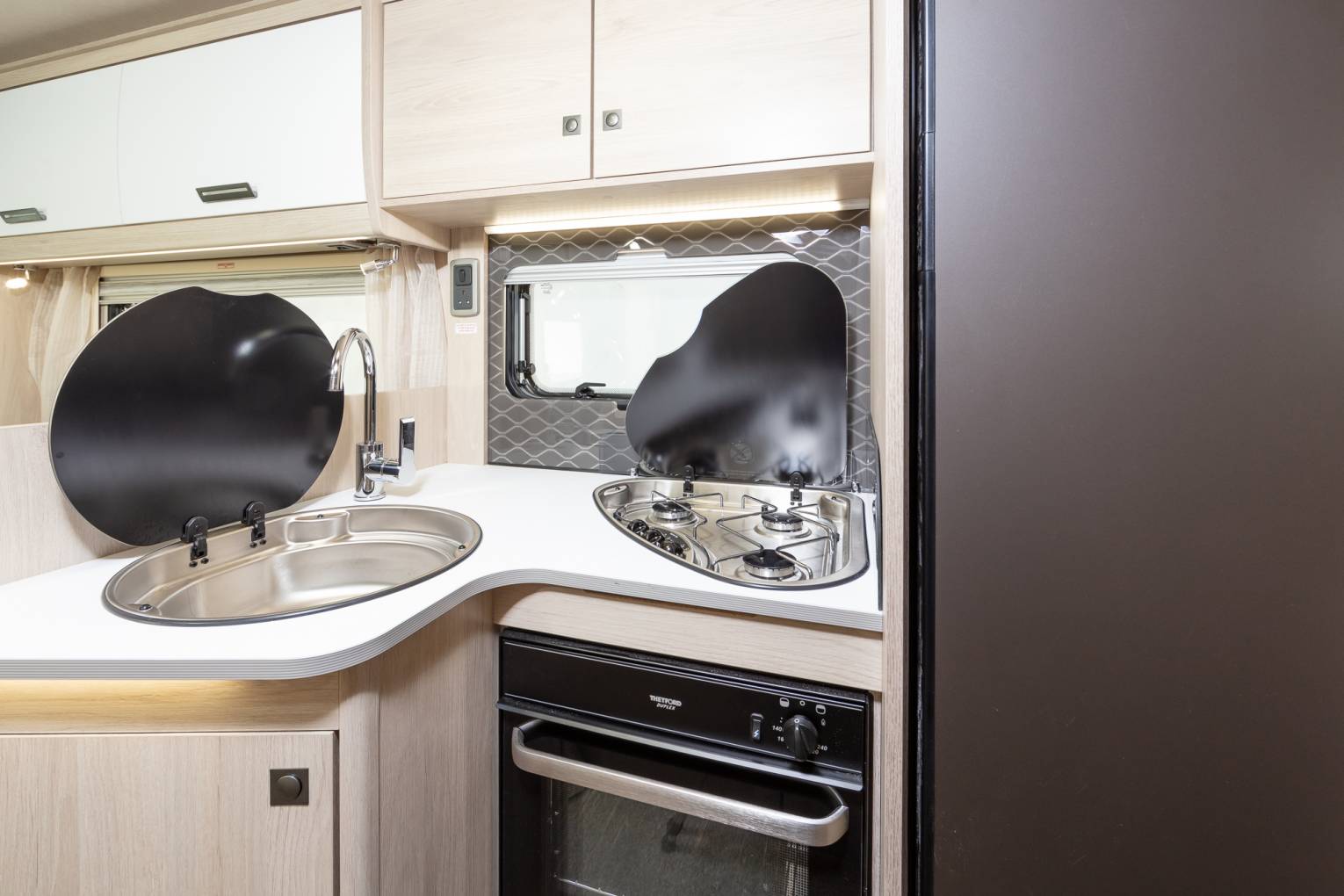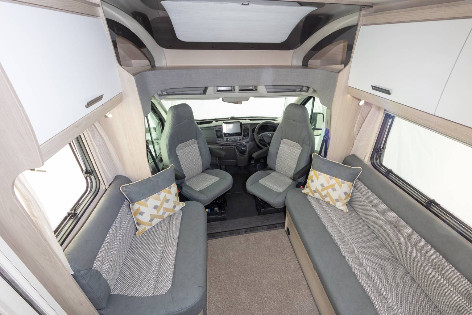 The Auto-Trail F-Line F-70 coachbuilt motorhome with fixed rear twin beds provides a sumptuous rear sleeping space and has the option of a drop-down double bed over the lounge area, which makes this layout ideal for busy families. The front lounge encompasses the front swivel captain’s chairs, giving you a roomy and accommodating space to entertain friends or spend some quality time with family. The Auto-Trail F-70 also benefits from an ample washroom with a separate shower as part of a cleverly designed interior.