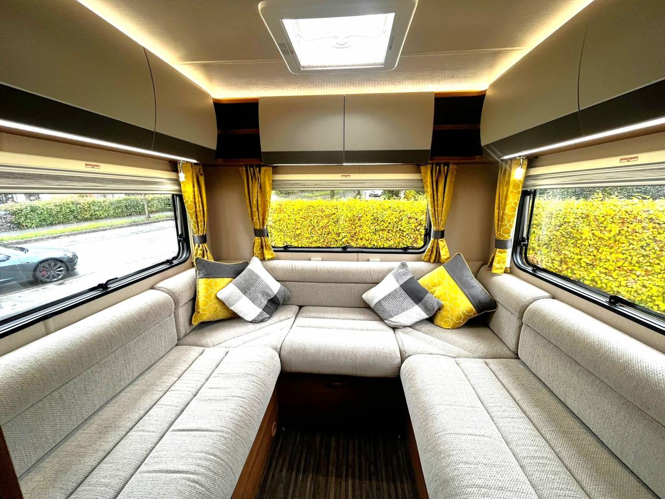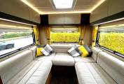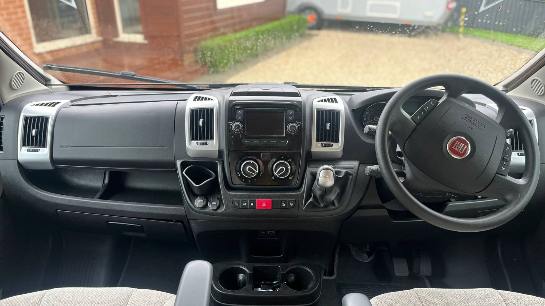 Only 2 owners from new, first registered in June 2019, it is the 4 berth and 2 belted motorhome with the much sought after rear U shape lounge and over-cab layout. Based on the latest generation Euro 6 compliant Fiat Ducato 130bhp 2.3 multi-jet super efficient diesel engine with a Fiat's comfortmatic AUTOMATIC gearbox. It has only done 6500 miles. The original specification of this motorhome from the factory included several upgrade options such as Media Pack and GT Pack. This motorhome has a maximum vehicle weight of 3500Kgs which allows anybody to drive the motorhome on a full car driving license and comes with two sets of keys. The external vehicle length is 6.34m.