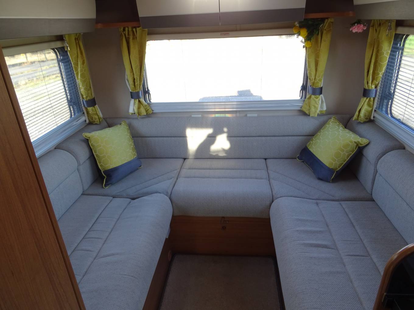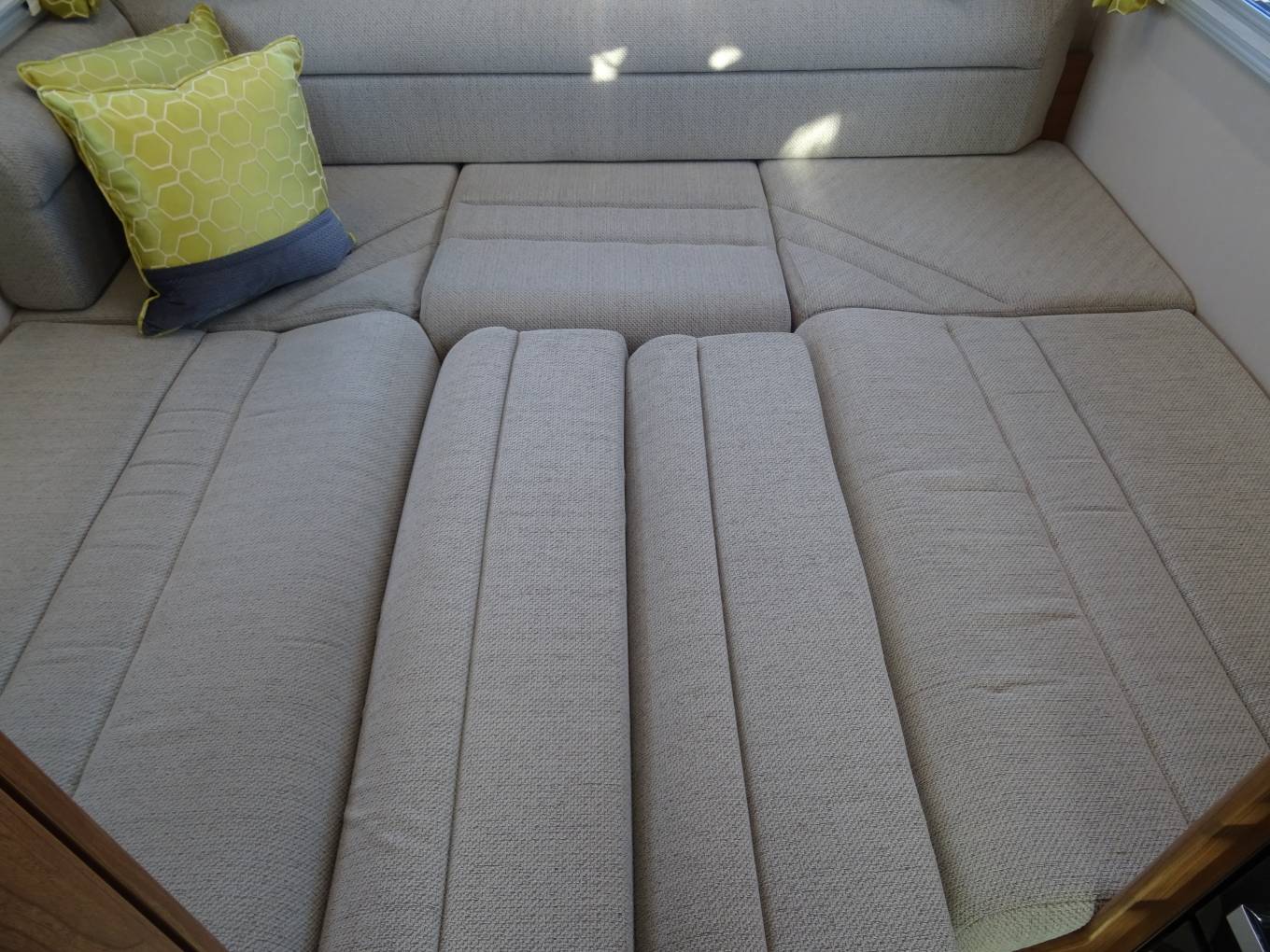 On the inside, the rear lounge is a super place to be, with large facing sofas (u shaped with underneath storage) these can be used as single beds or convert into a large double. There is also plenty of over and under cupboard LED mood lighting and storage, including a wardrobe.