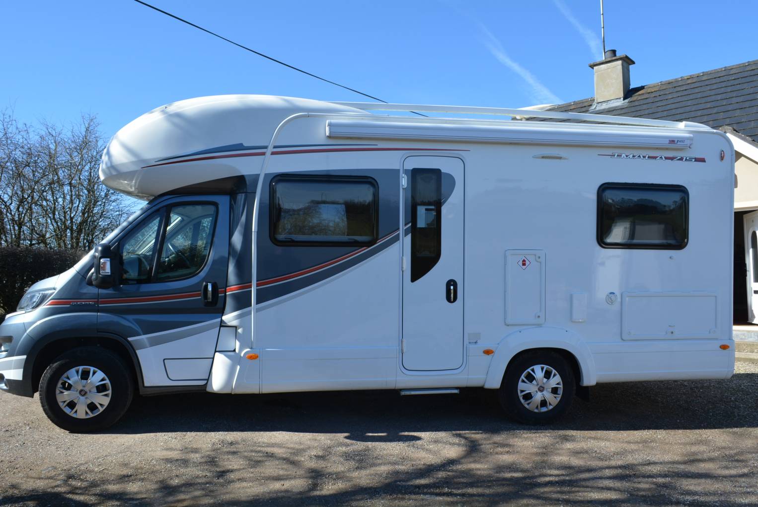 PRICE REDUCED BY £1500. 2015 Autotrail Imala 715 4 berth Motorhome For Sale. This low mileage Motorcaravan is presented in good condition with a great specification list to match. Based on the Fiat Ducato chassis with a 2300cc 130hp engine and 6 speed manual transmission supported by cruise control, air conditioning and reverse camera. The spacious lounge area can accommodate 6 people as this model has twin swivel chairs and the half dinette arrangement provides travel seats for 2 people. This area also converts into a large double bed. The centrally located kitchen contains dual fuel hob, separate grill and oven, fridge freezer microwave oven and sink with chrome mixer tap. The French bed is complimented with a large storage area below which is also accessible from the outside. LED lights are promoted throughout. Other features include Grey coloured cab, TV aerial, drop down TV DVD player, awning, bike rack and hook up cable. Max weight is 3500kg and it measures approx 7.2 metres in length and 2.3 metres in width. Finance and part exchange are available subject to conditions. Please call Mark on 07715220807 for further information and extra photographs or email [email protected]. Viewing is by appointment only. Motorhome is located in Omagh Co Tyrone