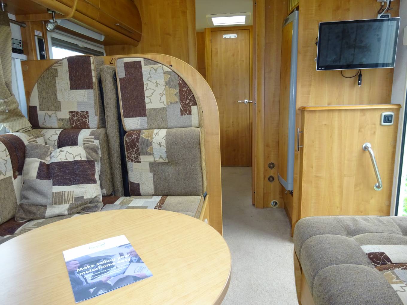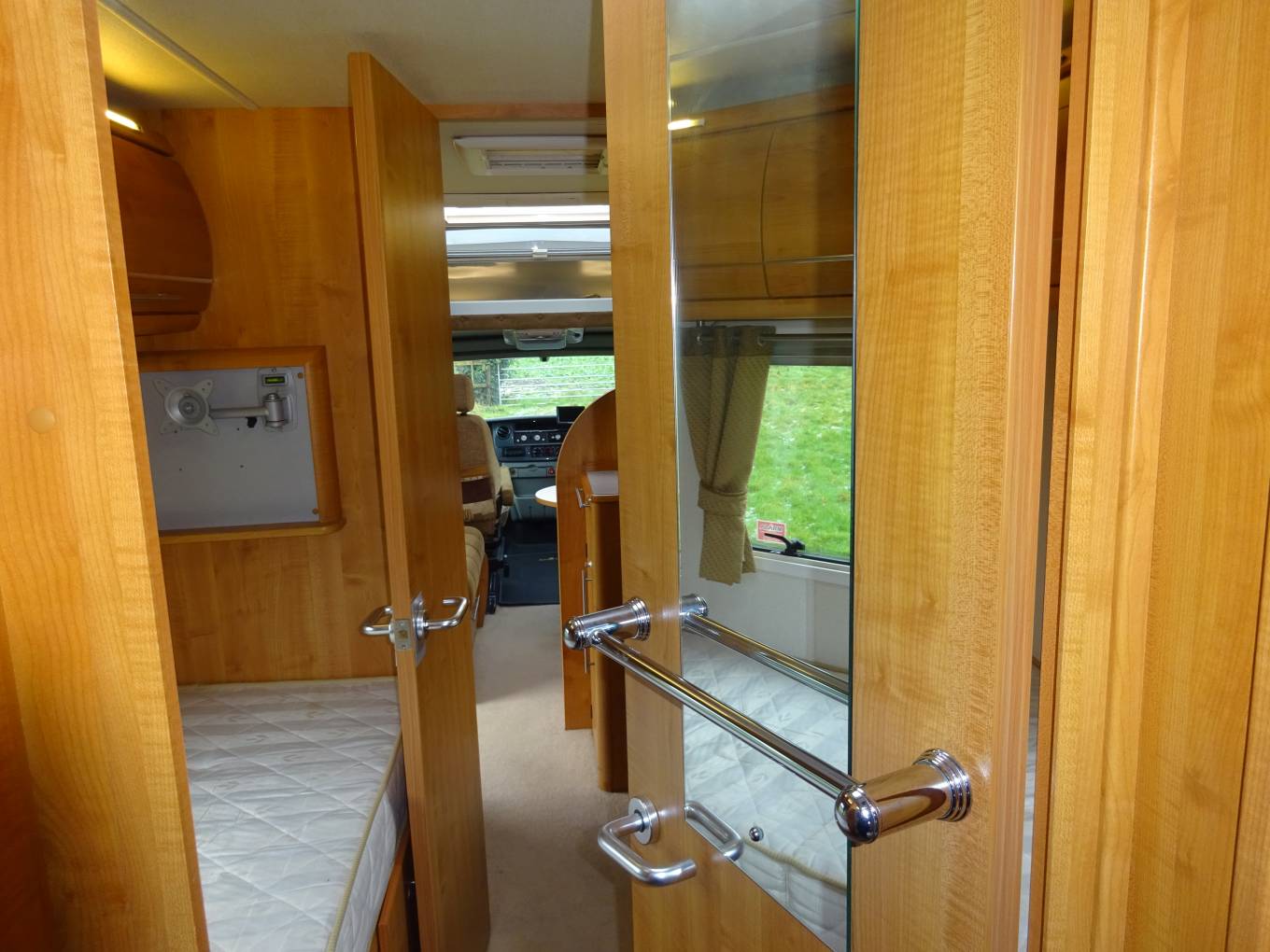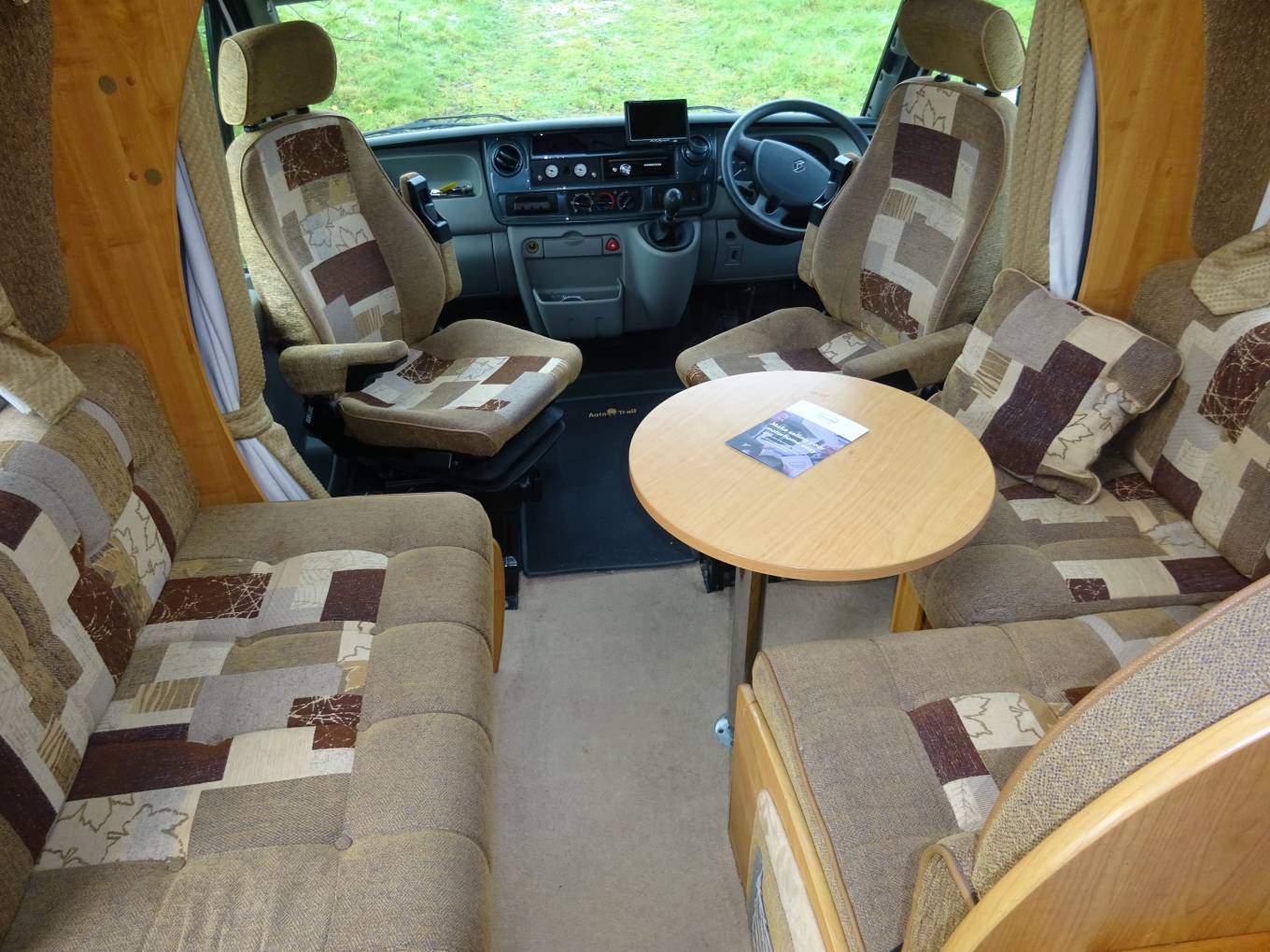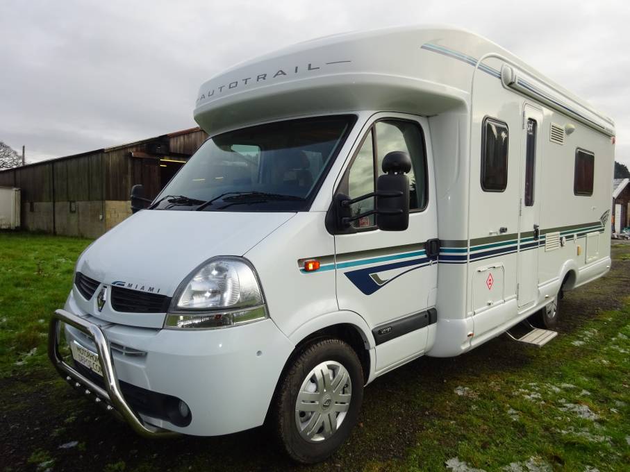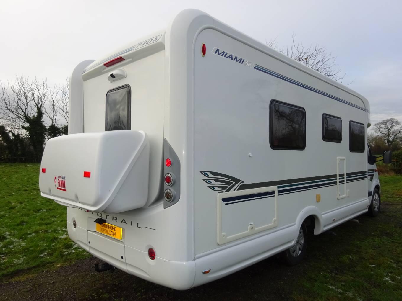 We present for sale this 2007 Autotrail Miami 740 S SE. In lovely clean condition all round this motorhome has four berths and four travelling seat belts. The layout provides spacious long term touring for two with the capability to accommodate and travel with two grandchildren or friends. Starting at the rear of the van we have the washroom with Thetford C-250 toilet, Separate shower cubicle, a large wardrobe hanging space and in between is the hand basin and toilet. There are plentiful shelves and a large storage space is under the sink. The washroom door has a large fixed mirror and a towel rail and opens into the bedroom. In the bedroom we have two fixed single beds. Above each bed are good size upper lockers, there is more storage below the beds. Moving forward the bedroom door (there is an actual bedroom door) opens into the kitchen area. The kitchen is spotlessly clean. On one side is the cooker with 3 gas hobs and one electric hob, gas oven and grill. The sink hides beneath the expanding worktop when not required. The slide out worktop is really useful. Storage is is found with a dual access shelf space below the sink and the usual lockers above. On the other side of the kitchen is the 3-way fridge with freezer compartment all nice and clean. The microwave sits in a cupboard with sliding door above the fridge. Heater and water controls are on the kitchen wall. Heating and water heating is by Truma Electric/Gas Blown air heater, Truma Electric/Gas water heater. The habitation entrance is between the kitchen and lounge area on the nearside of the van. The step is electric. An Avtex TV is mounted on a bracket near the door to allow viewing from all lounge seats. The manual wind out awning is also on the nearside. In the lounge we have seating for up to six with a small side facing sofa and a two seat forward facing L shaped sofa and the drivers and passengers seats swivel to the rear. A great space for socialising. The upholstery is a modern pattern and colour that doesn't date the van.The forward facing sofa is where the two three point seat belts are located. No grey areas about passenger belts here. This seating area forms the additional bed with its slide out sections and drop-down legs, assembly take no more than a couple of minutes. Again, there are upper lockers for storage. The lounge feels bright and airy with a roof light over the seating area and a large sunroof over the cab. In the cab we have already mentioned that the seats swivel, they are the Isringhausen height adjustable ones with two adjustable armrests on each. Above the cab there is a partitioned tray ideal for maps and soft luggage etc. There are curtains for the side windows and a built in concertina blind for the front screen. Cab Air Conditioning is fitted. There is a Radio with CD and the twin rear view reversing camera screen is dash mounted. The front windows are electric as are the exterior mirrors. Bodywork is very clean and the smart blue decals are in good condition too. On the outside we have three storage lockers giving plenty of space in addition to the gas locker which fits the two included gas bottles. There is a Fiamma rear storage box. A neat towing hitch is fitted. On the front you will see the steel bull bar, less visible is the roof mounted solar panel, the control panel is in the lounge area. LED lights have been fitted as well.