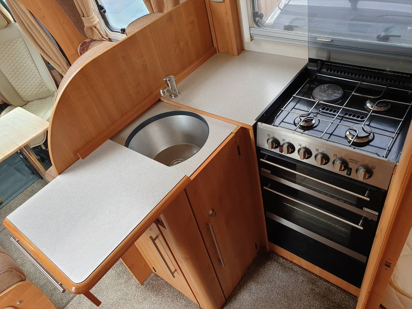 oven and grill. The sink hides beneath the expanding worktop when not required and