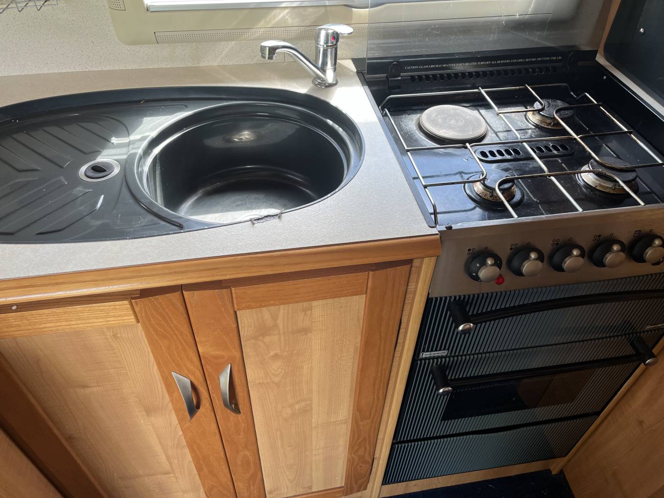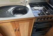 There are 3 gas burners and an electric hob. There are plenty of cupboards for storage.