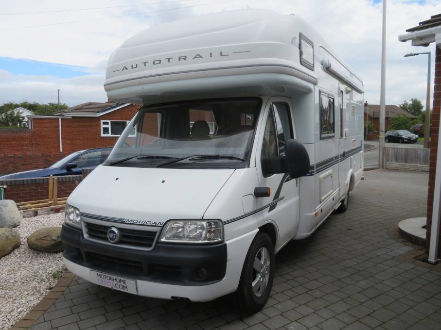 Motorhome Depot present a very nice 2005 Auto trail Mohican 4 Berth 2 belted Motorhome, Based on the fiat Ducato with its 2.8 engine and manual gear box and only 26000 miles. This is a great layout for a couple with a lovely end bathroom including a separate shower cubical moving to a lovely well laid out kitchen with Hob, Oven, Sink, Fridge a good amount of work top and lots of storage, then its the front lounge which really is a lovely place to relax in and this also makes a very large double bed finally at the front you have the front swivel seats with a large over head cab bed above.