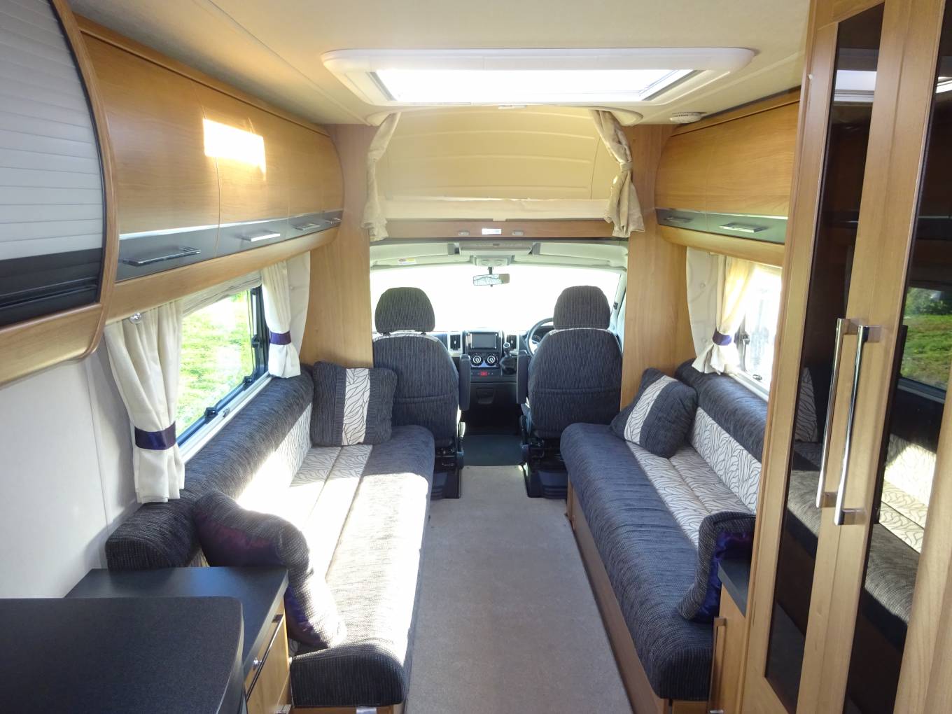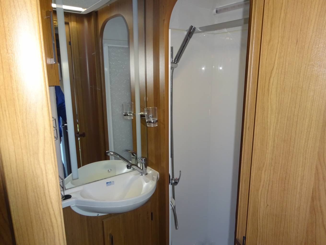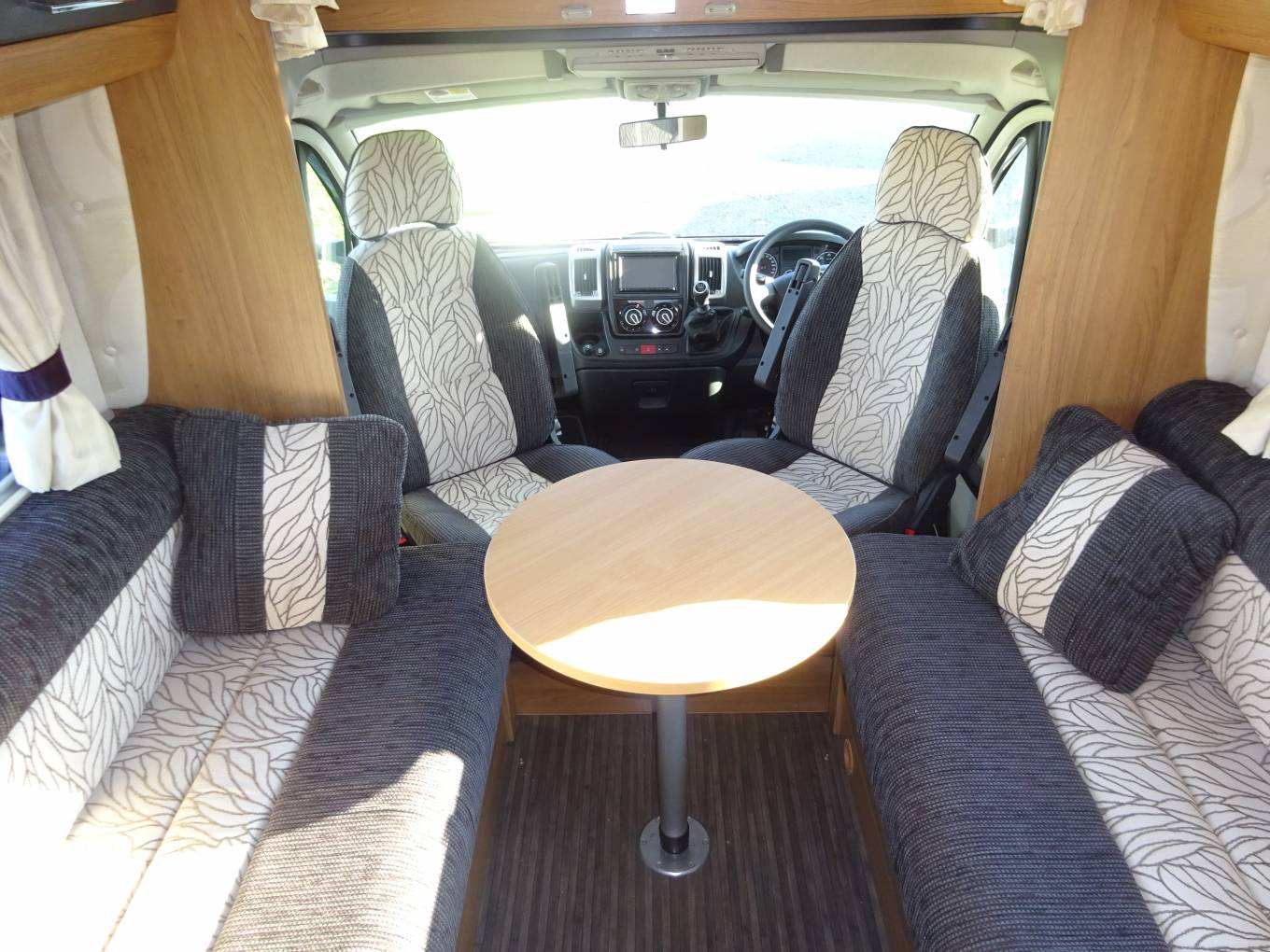 Located in Cheshire we have a stunning Auto-trail Navajo 4 berth Motorhome in immaculate condition. Coming with the Fiat 2.3 engine and a 6 speed gearbox, this is a very economical vehicle. The chassis has been uprated to 3650 kg so requires a C1 License. Inside the vehicle is like new with a bright, spacious layout consisting of a front lounge with side facing settees which can be used as 2 singles or can be converted quickly and easily into a large double bed .When the captains chairs are swiveled there is room for 4 adults to dine in comfort utilising the large dining table . Further back we have a bright and modern washroom which includes Thetford WC, washbasin with mixer tap and a separate shower cubicle with mixer shower.
