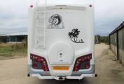 - Outside you have a wind-out sun canopy, ladders to access the roof, TV aerial, Tow Bar with electrics that has never been used, rear mounted spare wheel with cover, rear garage that can be accessed from both sides, gas locker with one included 6Kg propane bottle, bbq gas point, hot and cold shower point with included shower handset, plus a tall storage locker.