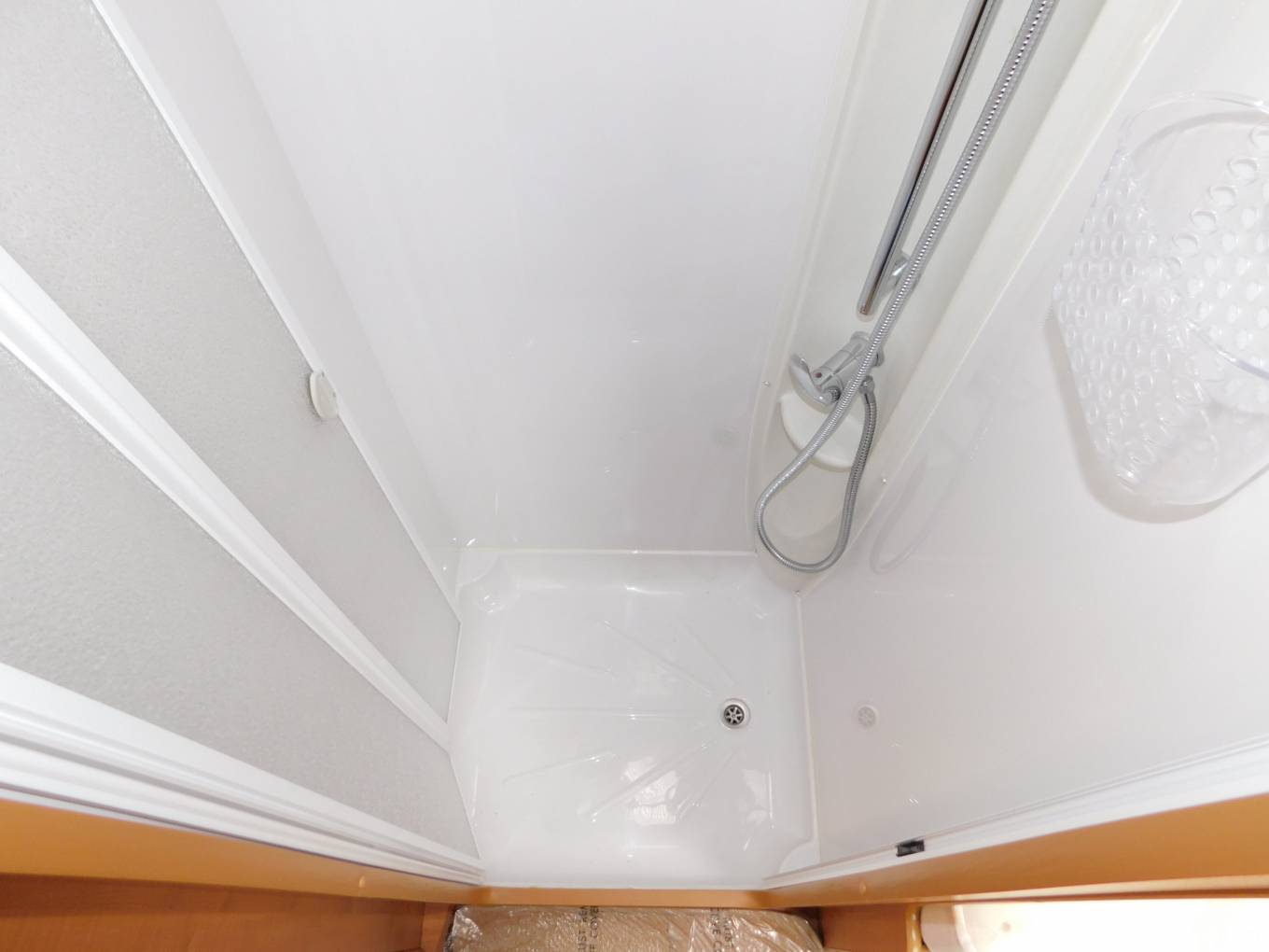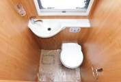 - In the middle of the motorhome you have the separate shower cubicle on the off-side, with folding perspex shower doors and the washroom is on the near-side, with built-in washbasin and a Thetford cassette swivelling toilet with electric flush. The door to the washroom swings to section off the rear off the rear of the motorhome from the front, to give privacy.