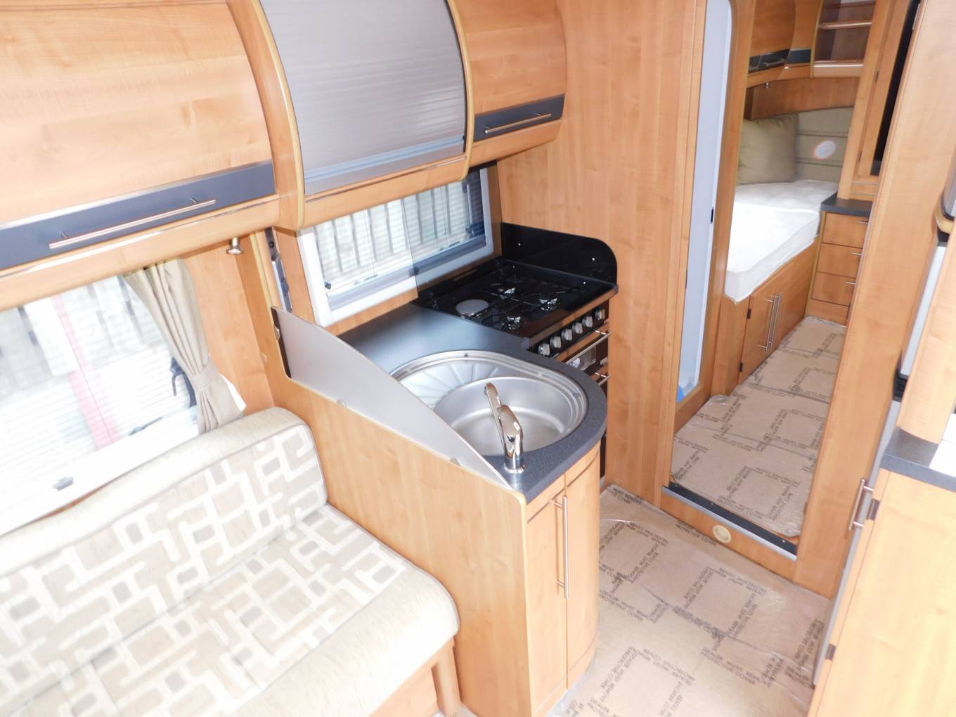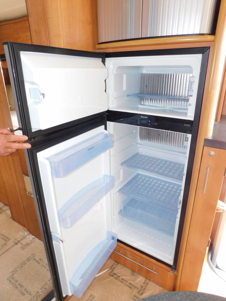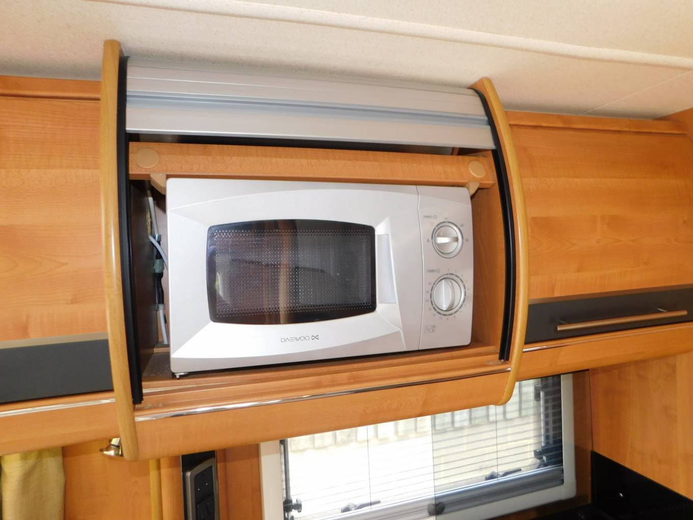 - The kitchen is well specified with a large sink with draining board and chrome mixer tap, a dual fuel hob with 3 gas burners and an electric hot plate, gas grill with oven beneath, above is a built-in Daewoo microwave oven. Opposite is a Dometic tall domestic style fridge with separate freezer compartment, plus plenty of storage cabinets for all of your holiday provisions.