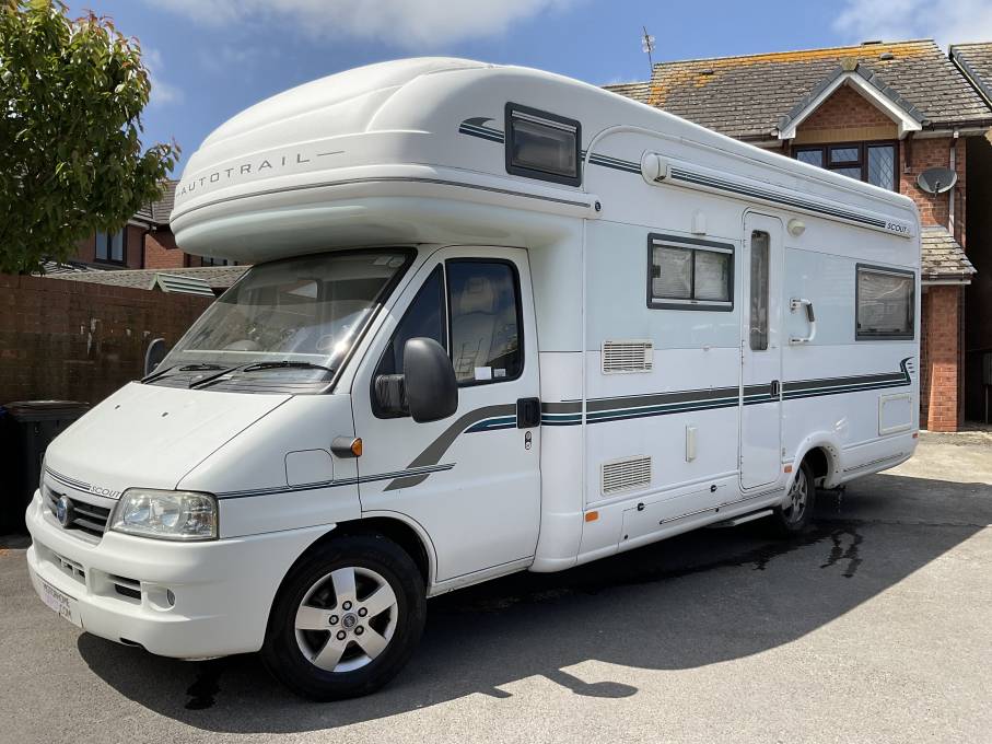 Motorhome Depot Stoke on Trent is delighted to have on offer a 2005 edition of the popular Auto-Trail Scout SE. This 6 berth, 6 belt Coachbuilt motorhome is based on the popular Fiat chassis and has a powerful 2.8 litre diesel engine with a 5 speed manual gearbox and boasts great service history throughout its life. Starting at the spacious rear we have the U shaped lounge which boasts great storage options both above and below. The longer bench could be used as a single bed if required or both be converted into a large double. The well equipped washroom is comprised of cassette toilet, vanity style hand wash basin and a separate shower enclosure. The dinette again has great storage and includes 2 3 point travelling seats as well as 2 additional rear facing lap belts so upto 6 people can travel safely. This will again convert to a double bed if required. The kitchen is everything you would expect from an Auto-Trail and comes with a 3 burner gas hob with additional electric ring, grill, oven, hand wash basin, 3 way fridge and a microwave oven. Finally we have an overcab bed that will comfortably sleep the final of the 6 berths. Please call our friendly sales team to discuss further or arrange a viewing.