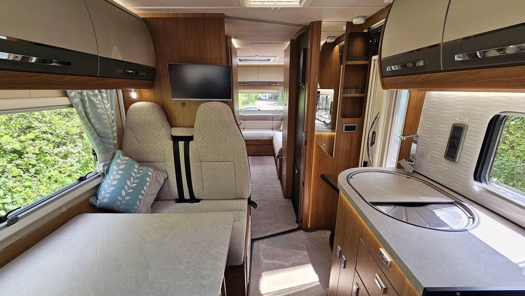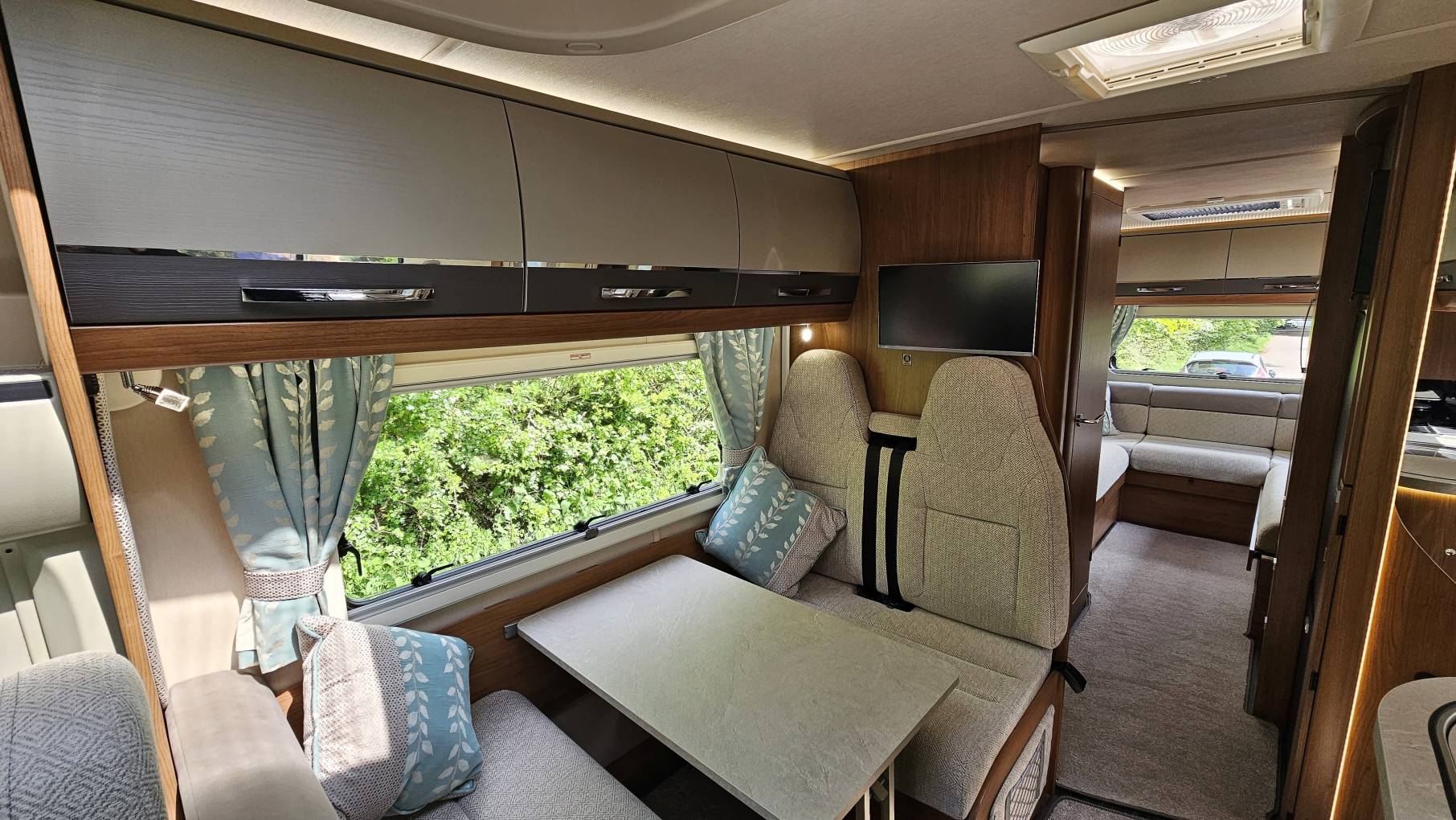 Sitting proudly on its AL-KO long life galvanized FIAT chassis, 6 speed manual transmission and 2.3 litre diesel engine. Complimented with great features such as cruise control, cab air conditioning, reversing camera, Thatcham CAT 6 Tracking System, Alarm, Wind-out canopy, Victron MPPT 150W Solar panel x 2, Avtex 12v TV, Tow bar, Superior Alde heating, an on board Wi-Fi set up and more.