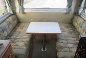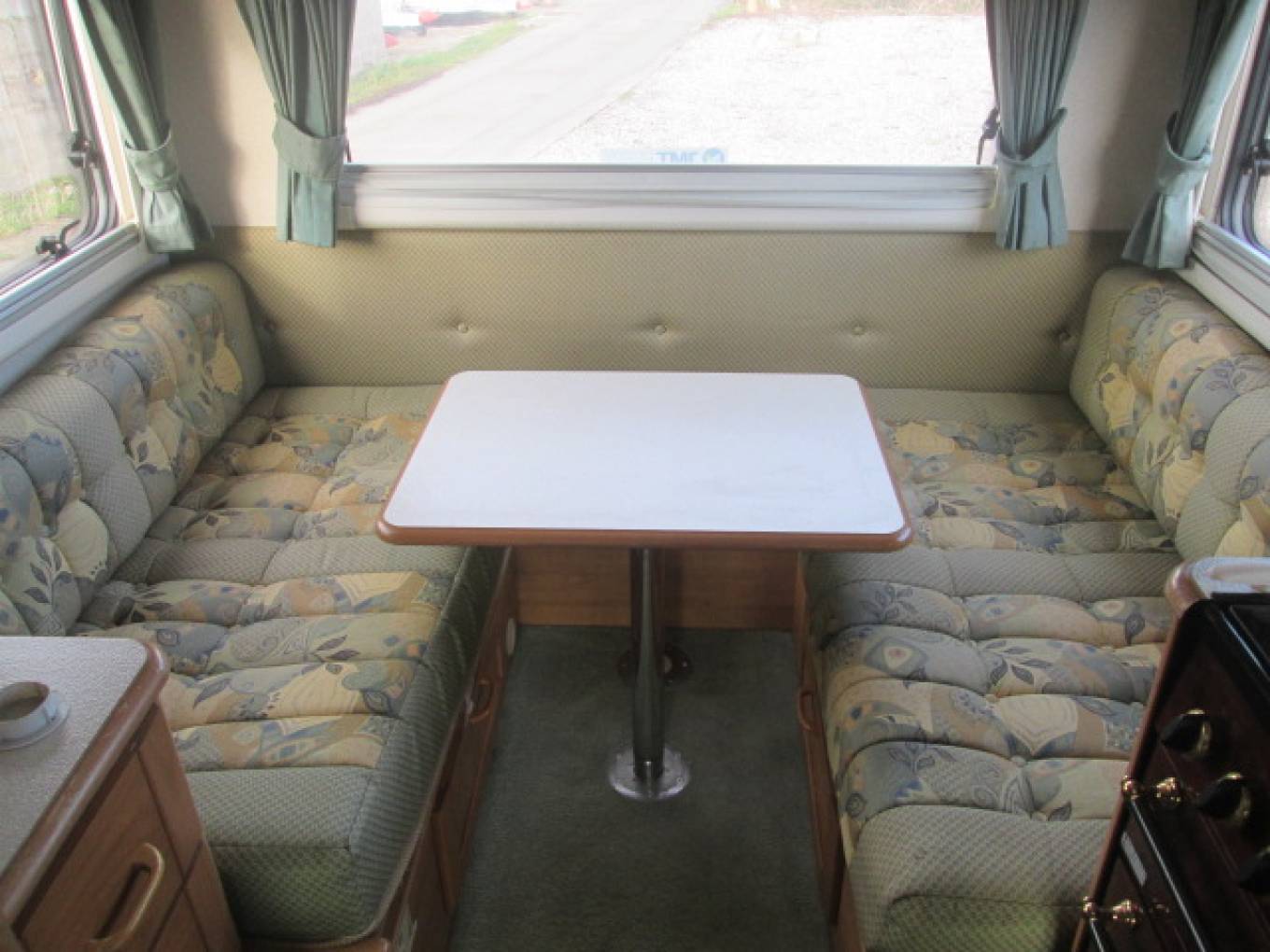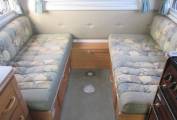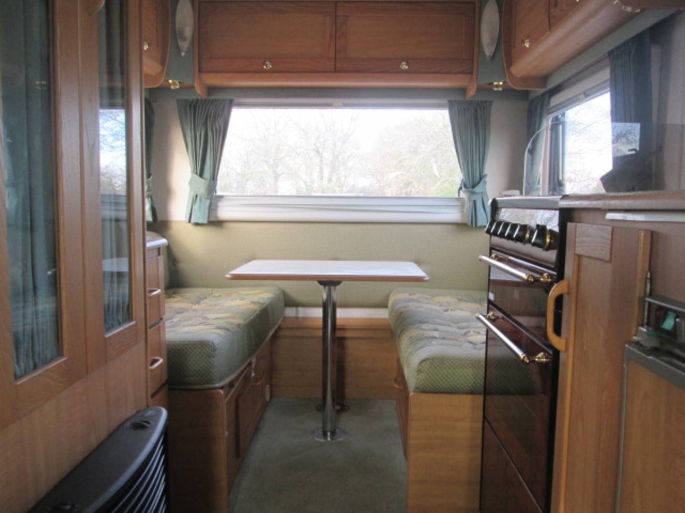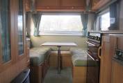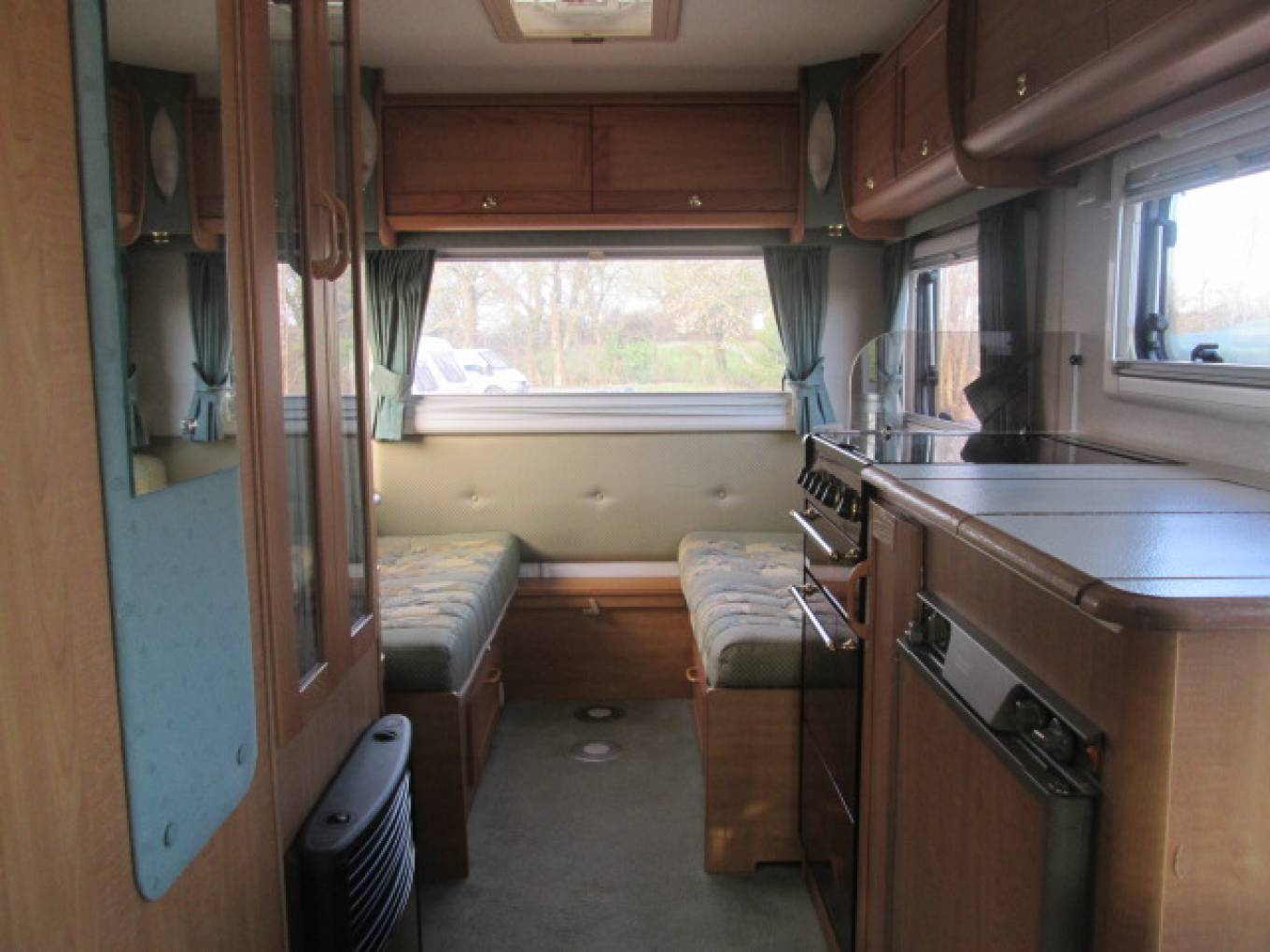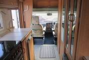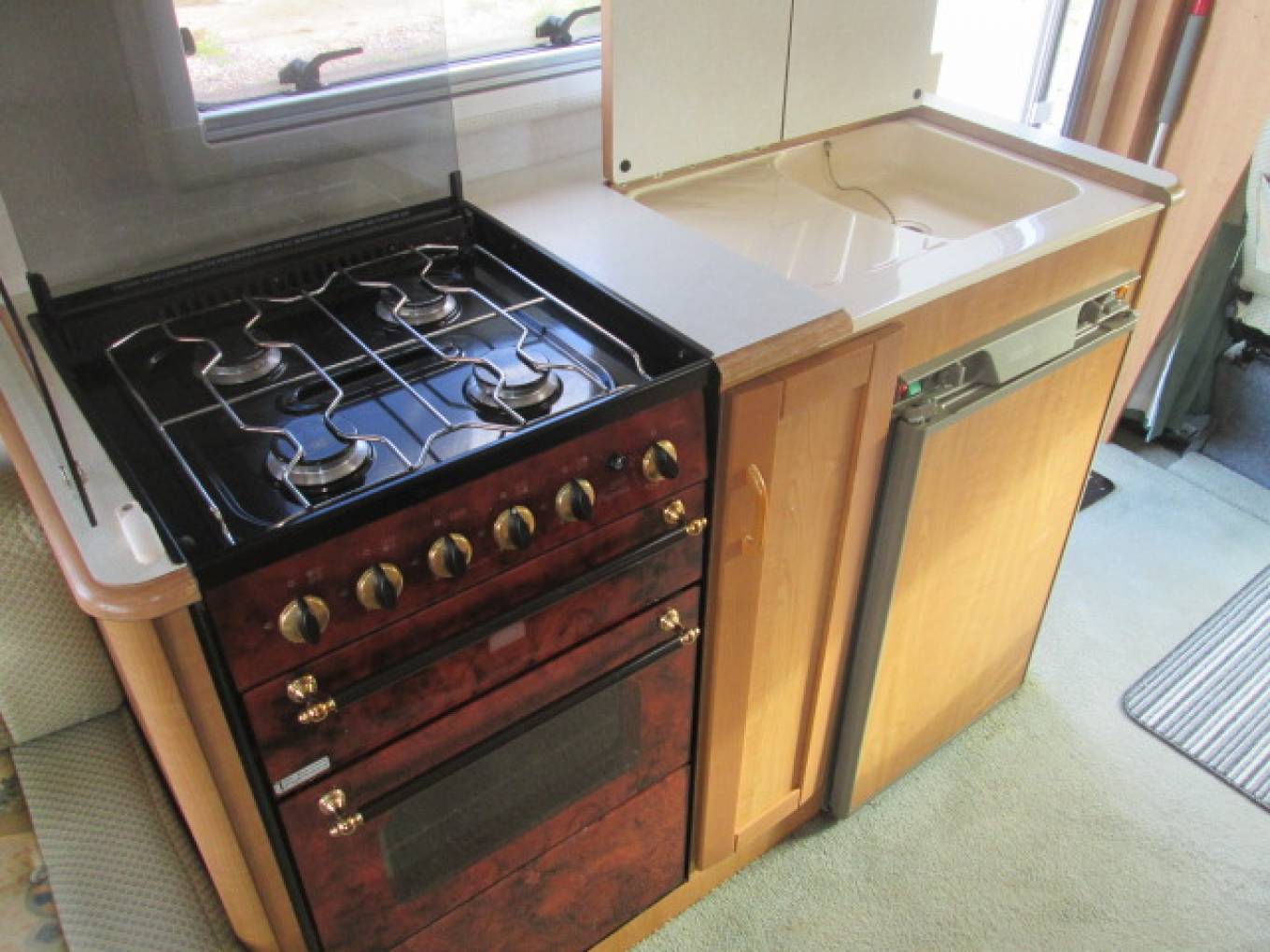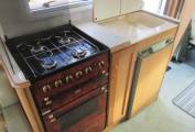 Sleeping is via the rear lounge bench seats combining with pull forward slats to make a comfortable Double. There is a Kitchen Area with Full Oven, Hob, Grill, Sink plus Fridge Freezer.