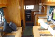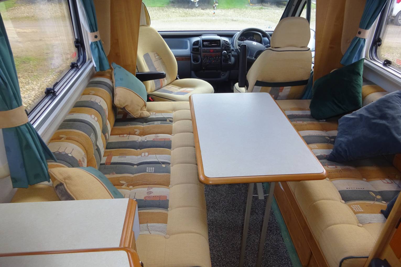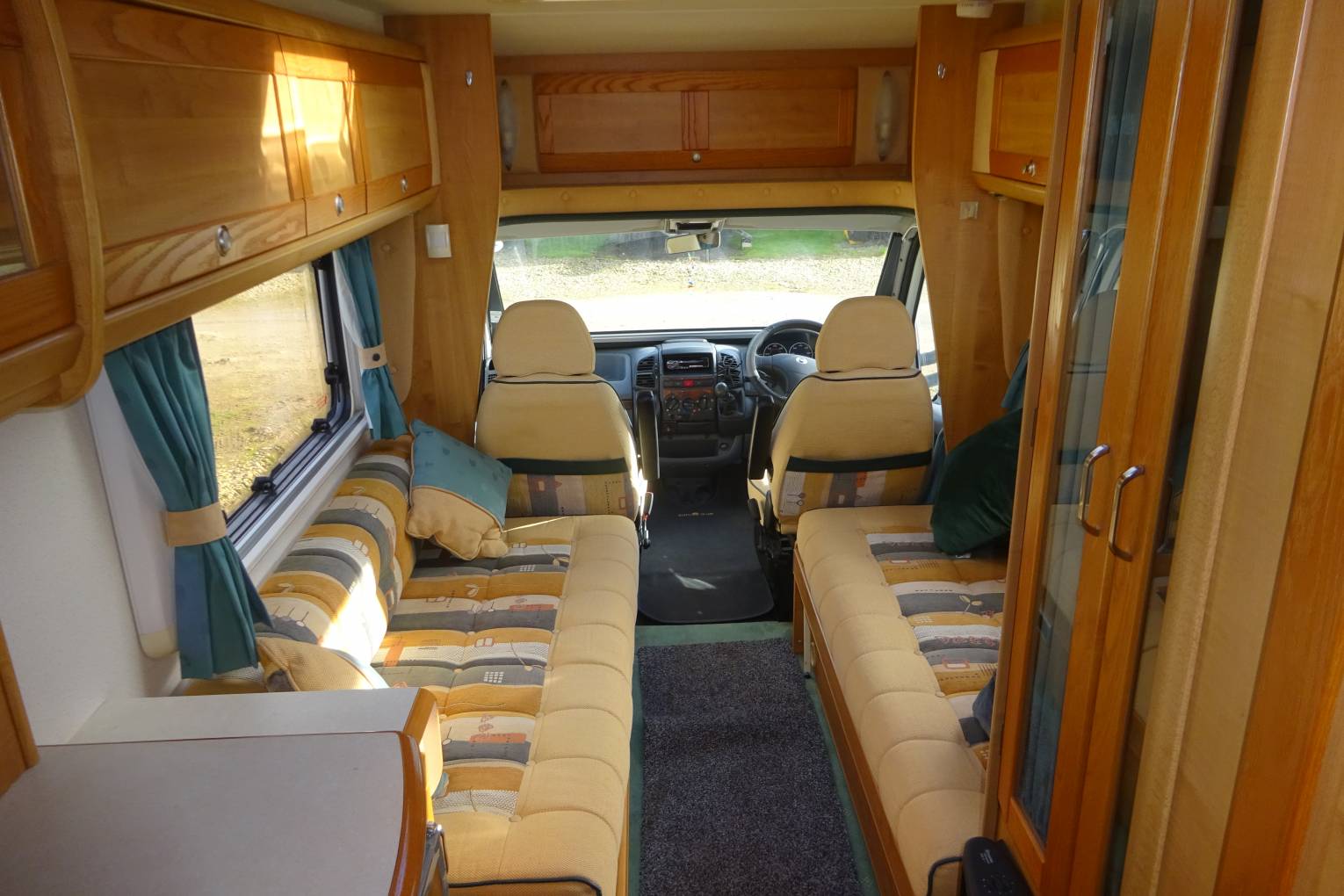 As you step inside the motorhome you get a real feel for the condition of the Motorhome with a light, warm, comfortabel feel. The end kitchen layout makes good use of the space, allowing for a spacious living area. The well equipped kitchen with a3 burner gas hob supplemented by a 4th electric ring, oven and grill, sink, and three way fridge allows for all your cooking needs. With a good sized bathroom with a separate shower, offering what you would expect from a motorhome of this standard. The living area is completed with a fold away table that sits nicely between the settees. The settees easily makes up in to a large double. There is ample storage throughout the motorhome for all your needs. It really must be seen to appreciate the quality.