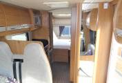 The sleeping arrangements consist of 3 large double beds, the first one is the highly desirable rear island bed, the second is a huge over cab bed that will easily sleep 2 adults and a dinette that converts in to another good size double bed.