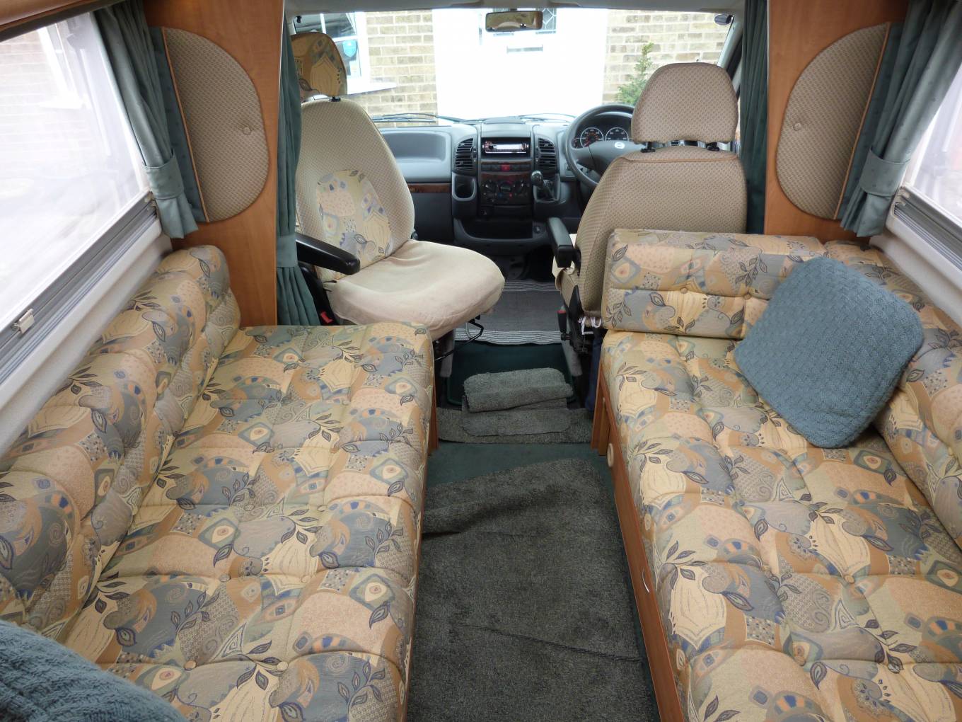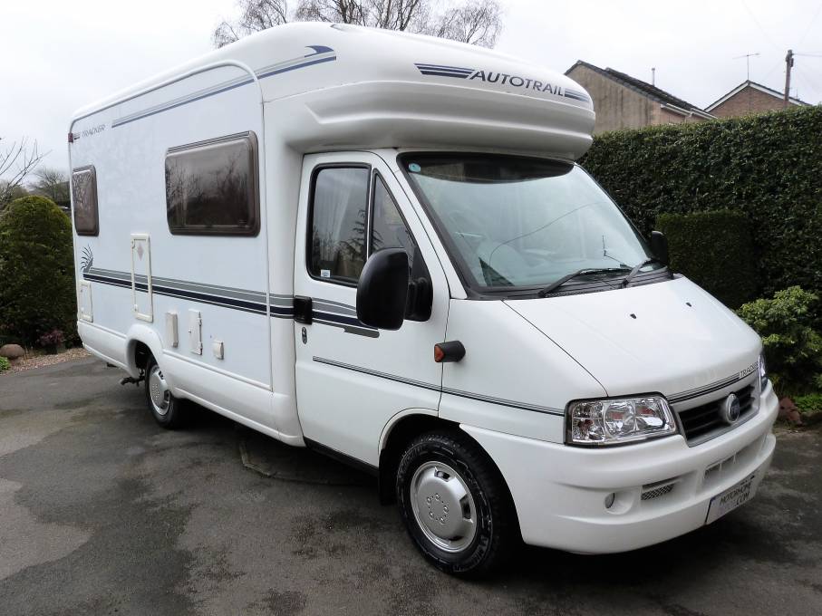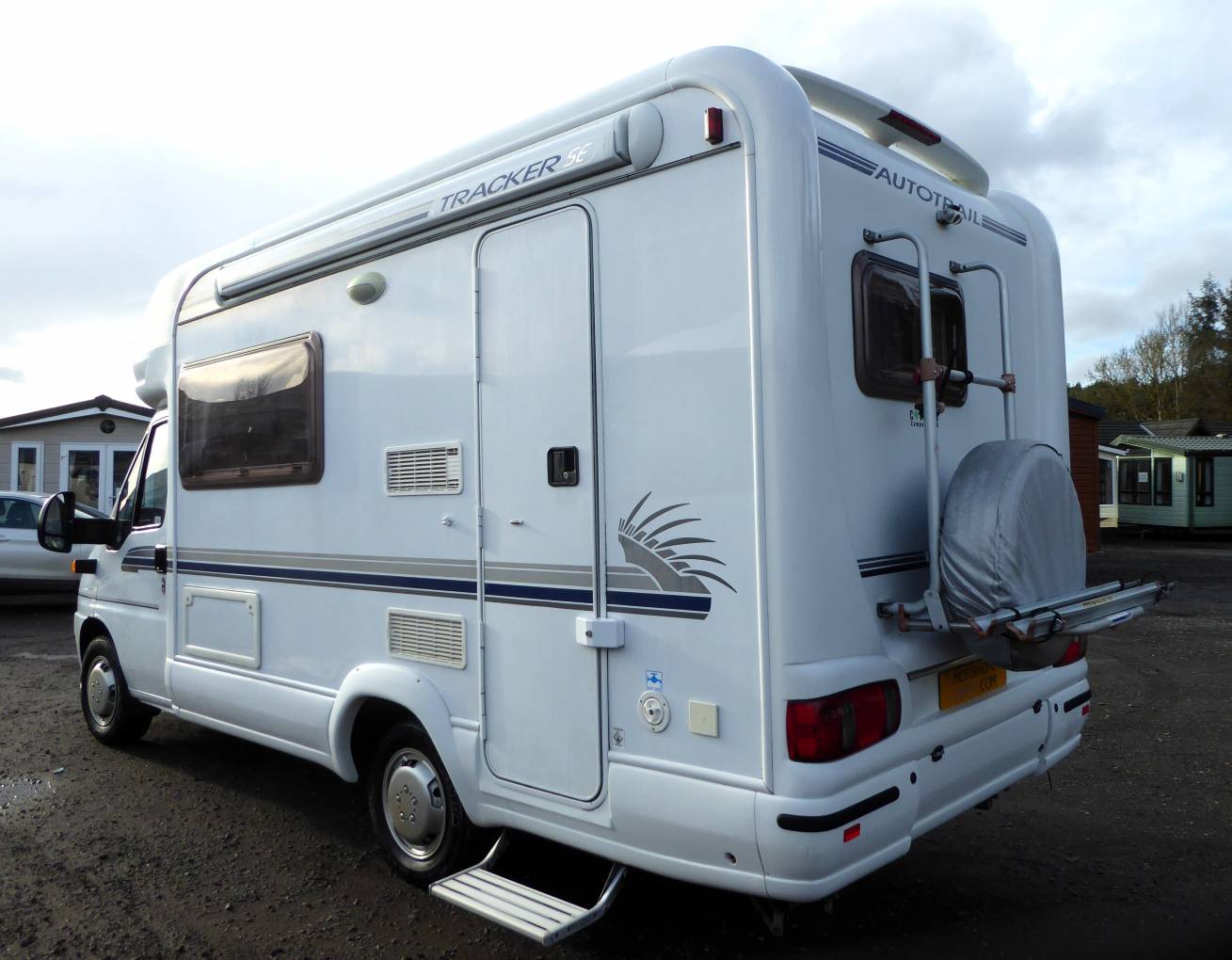 Call with any questions 01423 609985. This 2003, low profile, coachbuilt motorhome is a fantastic example of an Autotrail Tracker SE. It is in immaculate condition inside and out, it’s an excellent opportunity to purchase a quality motorhome. At 5.90 metres long, it will fit on any driveway or car park space and being 3400kg, GVW, anyone can drive it. This 2-berth motorhome, is the ideal for couples and has the kitchen at the rear, with a cooker, sink and fridge, above which is ample worktop space. The washroom has toilet, sink and shower. The 2 sofas, provide comfy places to sit and create a large double bed across the full width. Additional mood lighting above the cabinets, creates a real sense of “home”. The upholstery is in excellent condition throughout. 2 single beds measuring 6 feet, can also be created. Up front, the passenger seat swivels. In the cab, there is a radio/ CD and rear view camera. Additional features include, 100w solar panel, rear steadies, gas/ electric heating, wind out canopy, electric step, electric windows, external shower,and gas BBQ port, plus bike rack. This distinctive motorhome, built on a Fiat Ducato chassis, comes with habitation report and MOT to February 2025. It has travelled 55,900 miles. Every inch of it, is clean, tidy and in the best condition it could be. Viewing by appointment only near Easingwold. Part Exchanges welcomed on this vehicle, for further information and photos, please call us on 01423 609985 quoting reference 210855