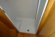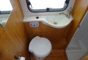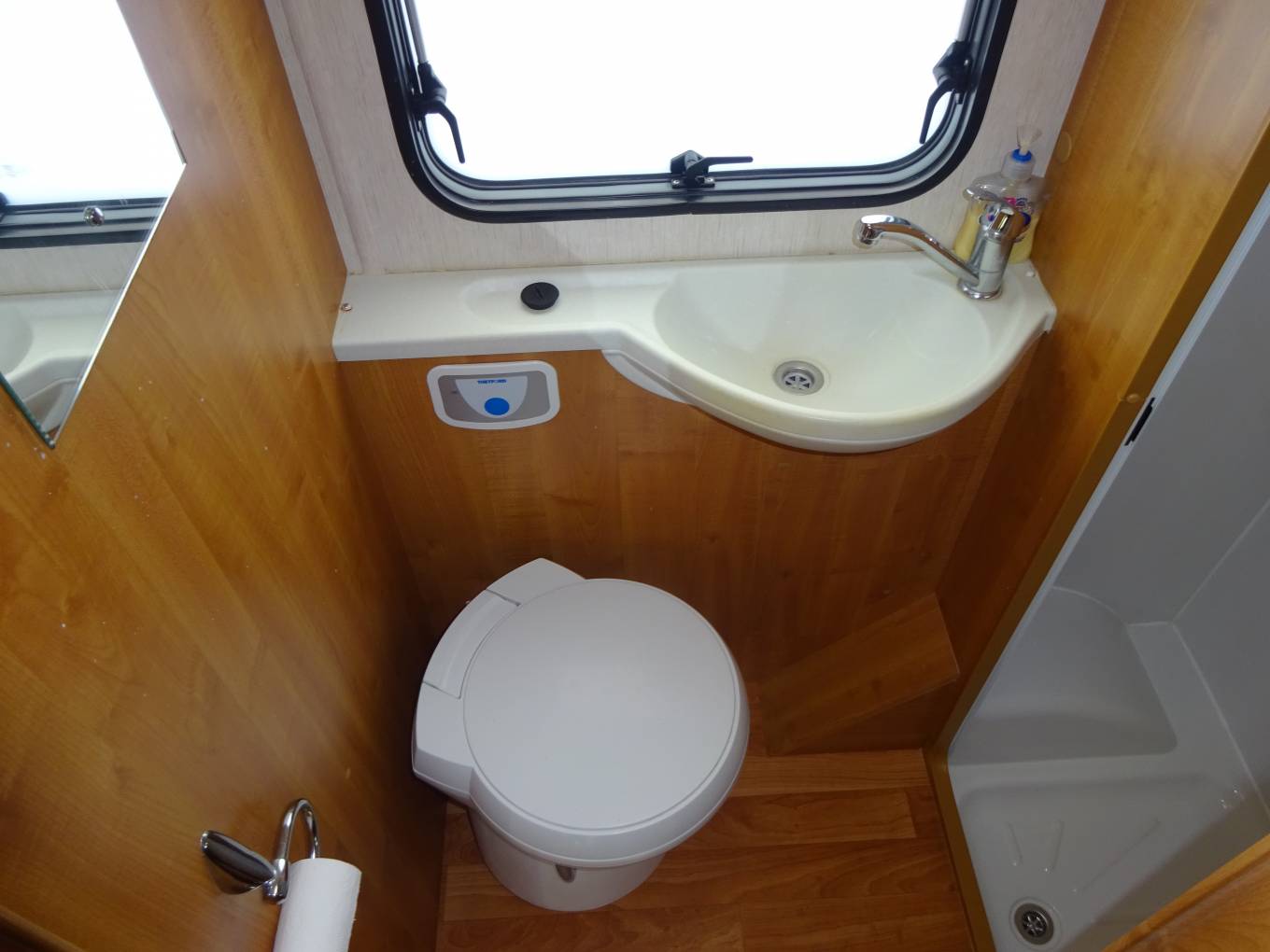 There are three double bed options from which to choose, retire straight away to the fixed overcab double, or make up the bed in the front or rear lounge. All the beds are generously proportioned, with the overcab sleeping the largest bed and offers generous headroom along with a small window on the nearside for natural light. Both lounges are simple to convert into beds. At the front, drop the table and quickly rearrange the dinette cushions, pull out the side sofa to make a good-sized double bed across the width of the motorhome and the generous rear double bed can also be quickly converted from the rear lounge sofas.The washroom has a vanity washbasin, Thetford swivel cassette toilet, mirror, opaque side window and a separate shower cubicle.