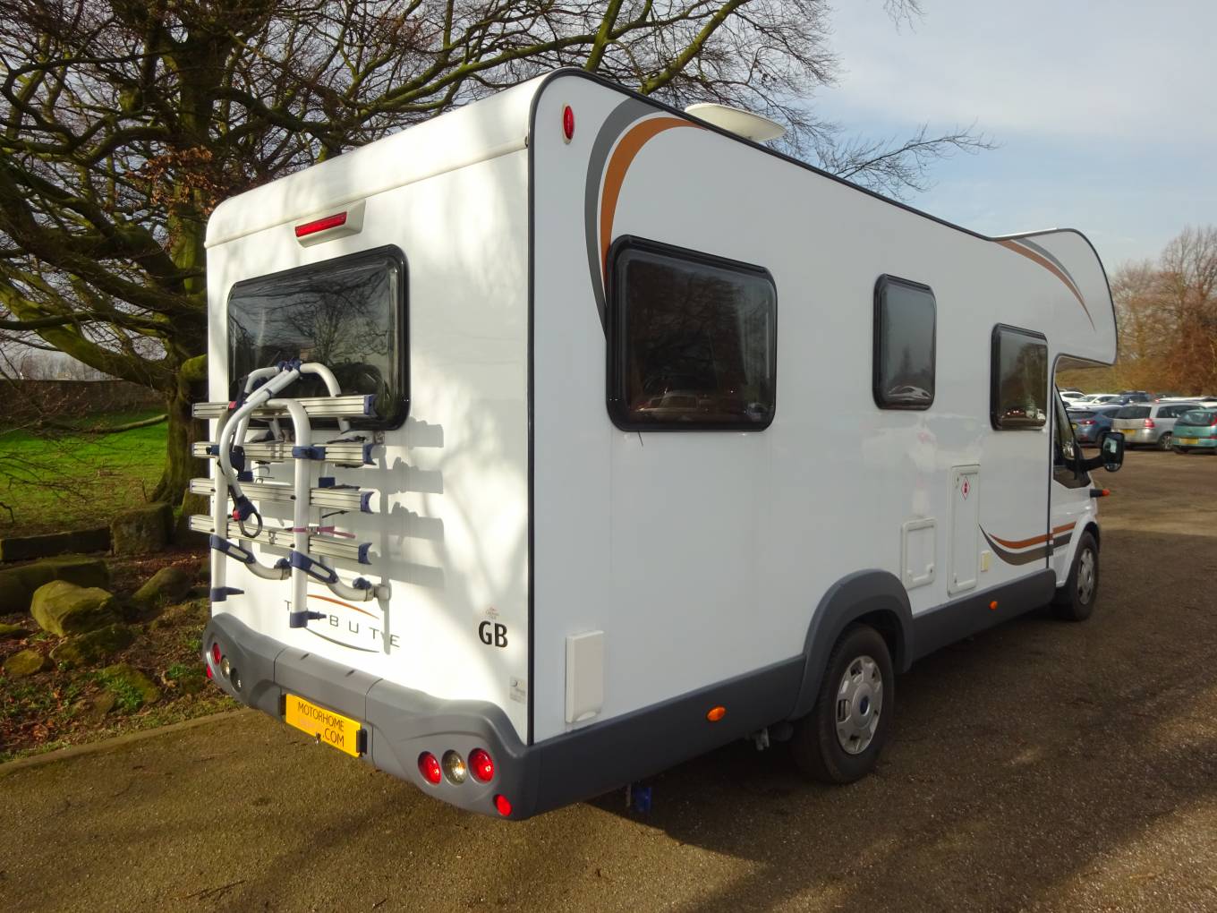 On the outside is a four bike cycle carrier, outside gas point, side lockers and one gas bottle. Viewing is by appointment only.