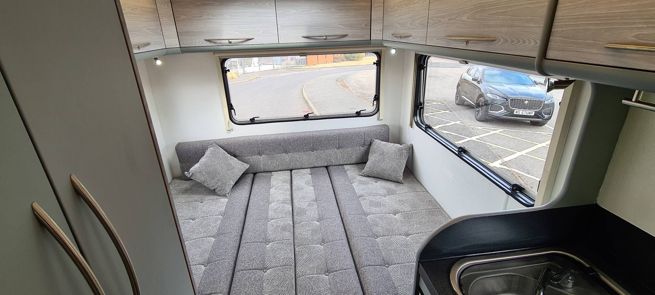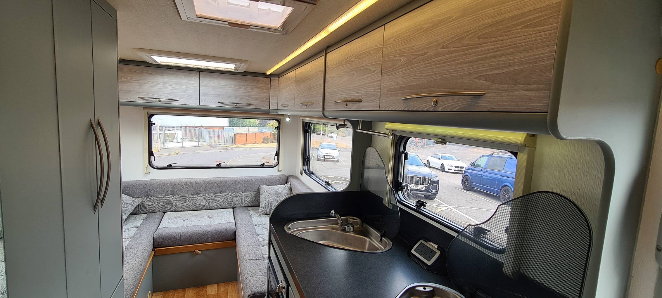 Based on the Ford Transit 2.2cc Manual transmission with only 23900 miles from new. It has been freshly renovated in a modern grey colour, with new upholstery and cushions all round. The van is very stylish and would suit perfectly for those just starting out Motor-homing.