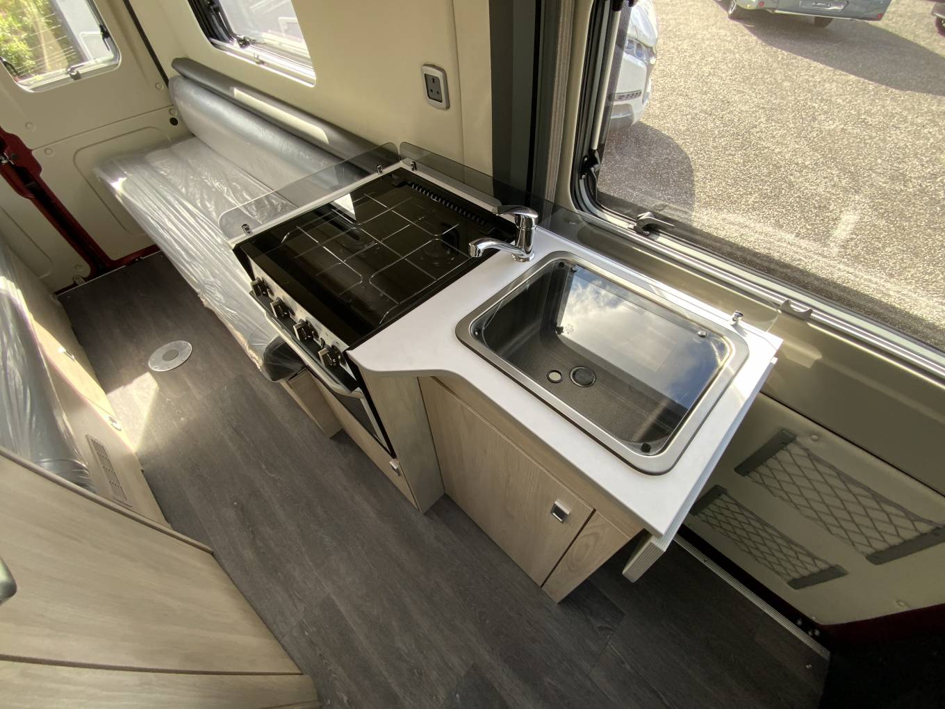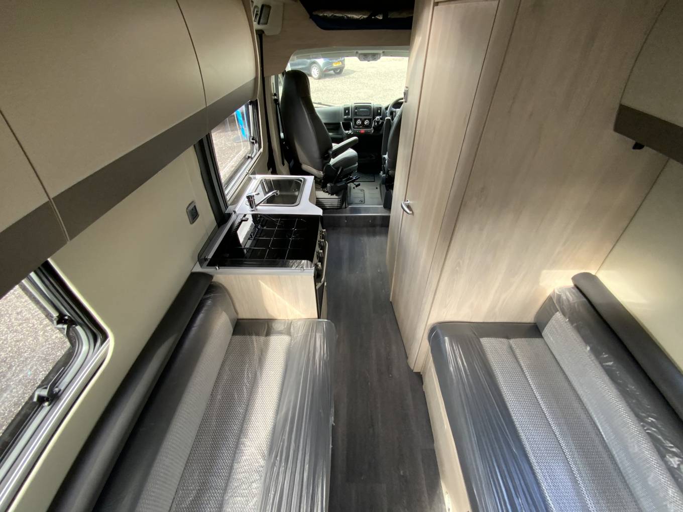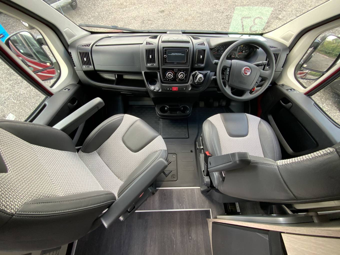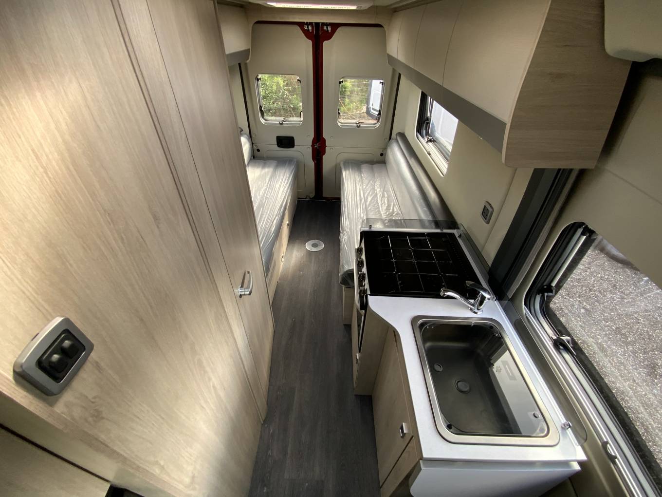 Tribute 660 – Brand New model for 2020 from Auto-Trail in the Tribute Compact range. 2-berth 2-seatbelt model with two full length single rear beds. This model is in metallic Red and looks fantasticTwo long rear bench seats (6ft 3in) that can be made into two singles or one large double bed. 2-berth and 2 seatbelt van conversion on a Fiat Ducato chassis. Great level of specification, with Driver’s + Lux Packs. Large kitchen area with hob & oven and plenty of work space and washroom with proper shower. A truly practical van conversion built to a high specification. Combines practical motoring at just under 6m in length. This van is easy to park and to drive around town. Ideal for day-to-day use, short breaks, travel to Europe and weekend getaways.