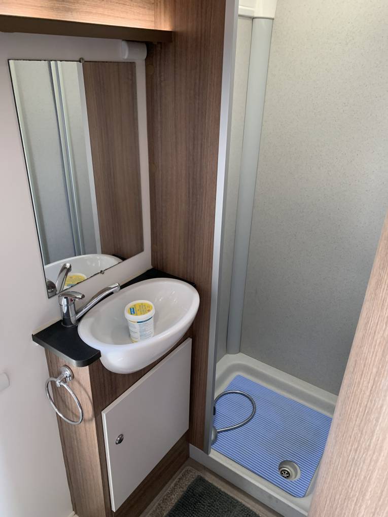 You can then find to the rear of the van a spacious bathroom area equipped with a toilet, sink and spacious shower with a door making this separate from the main bedroom area.