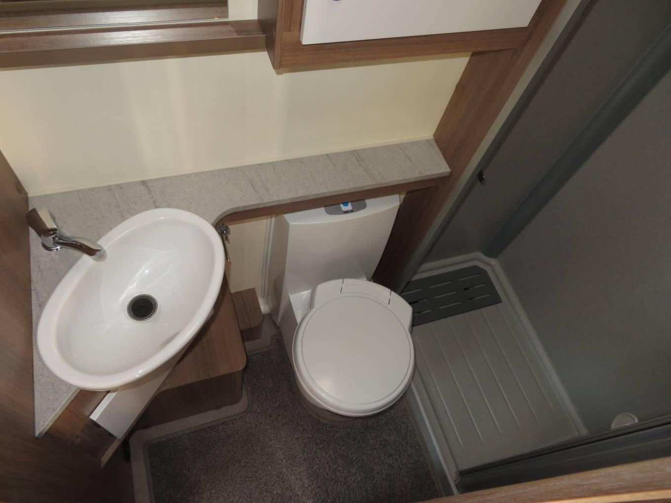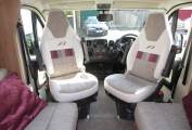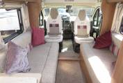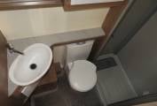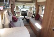 The Bailey 59-2 is also a lovely motorhome for sleeping in. The lounge area converts into a very comfortable double bed which runs across the motorhome (2.08cm x 1.34cm) but it is possible to create two singles running the length by using the sofas and the front swivel seats. It comes with a good sized washroom which includes Thetford flush cassette toilet, sink and separate shower.