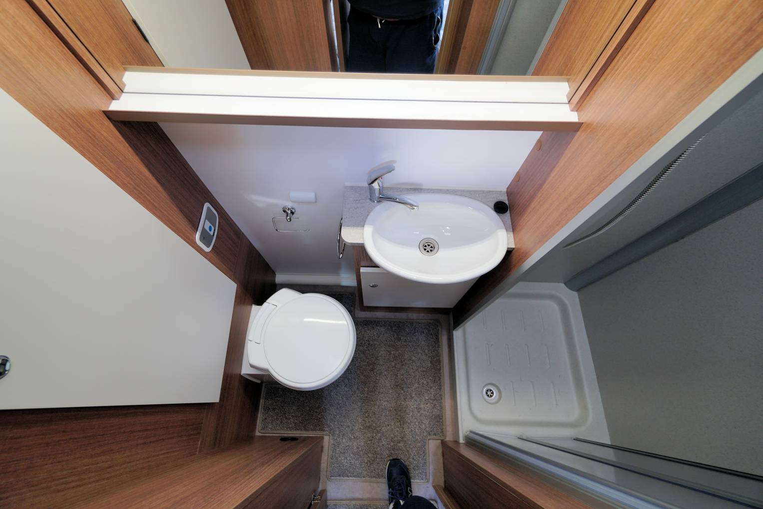 and at the rear is the good size end washroom, complete with Thetford cassette toilet,