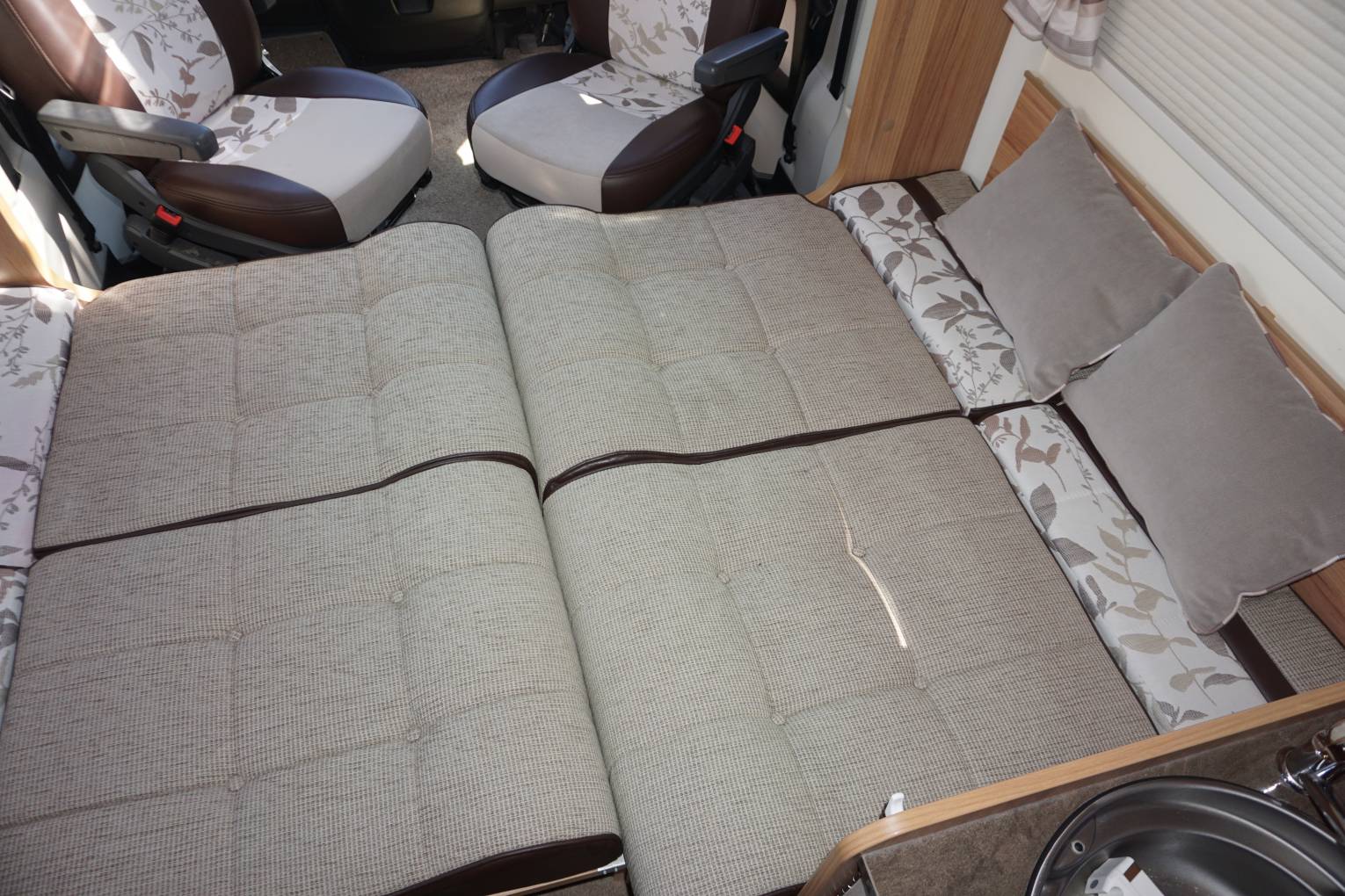 For night use there is a choice of either a fixed double bed measuring 1.79m (5'10") x 1.33m (4'44") or a front bed which is made using the seating area which is 2.25m (7'4") x 1.22m (4'0").