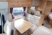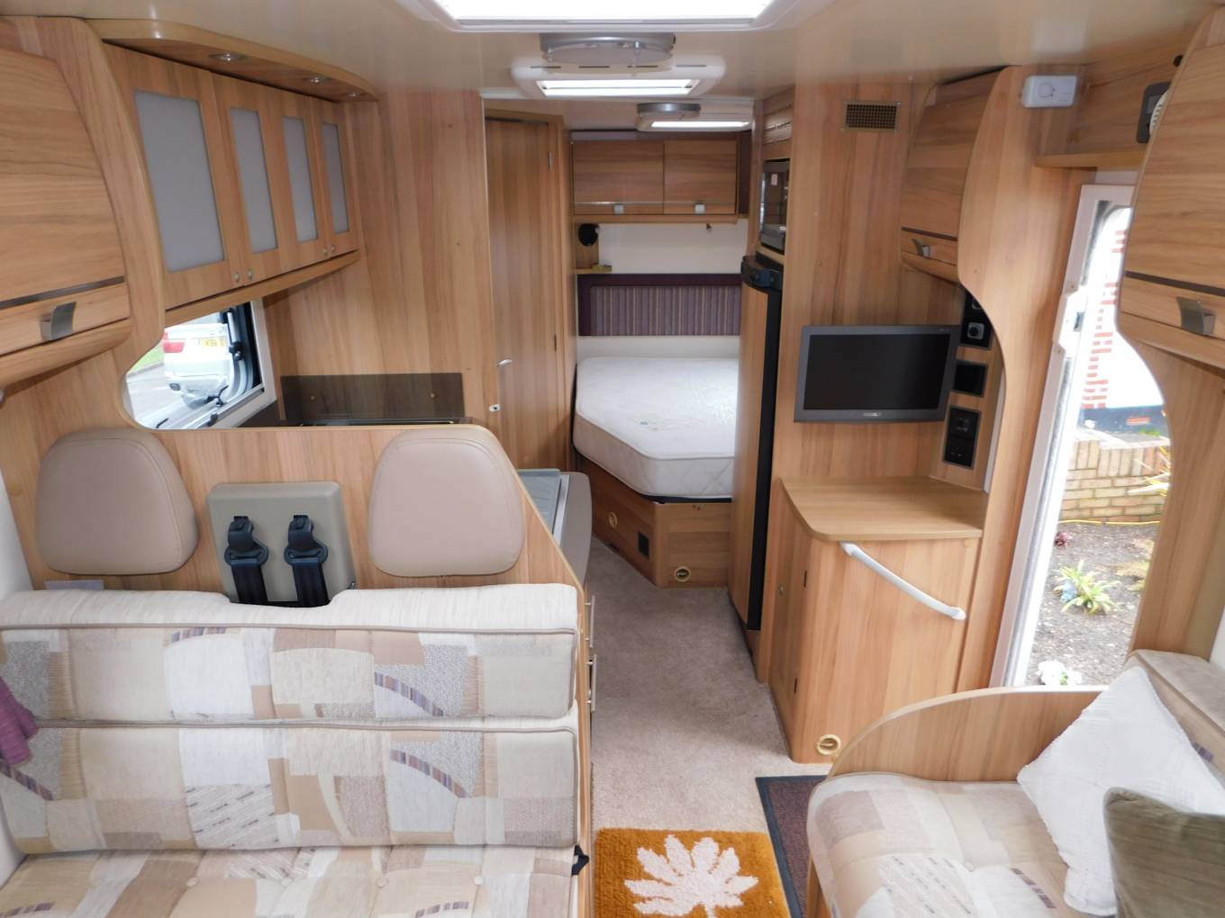 Truma gas and electric blown-air central heating and hot water heating, TV with built-in DVD player, loose fit carpets, 3 sunroofs, black out blinds and fly-screens throughout.