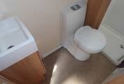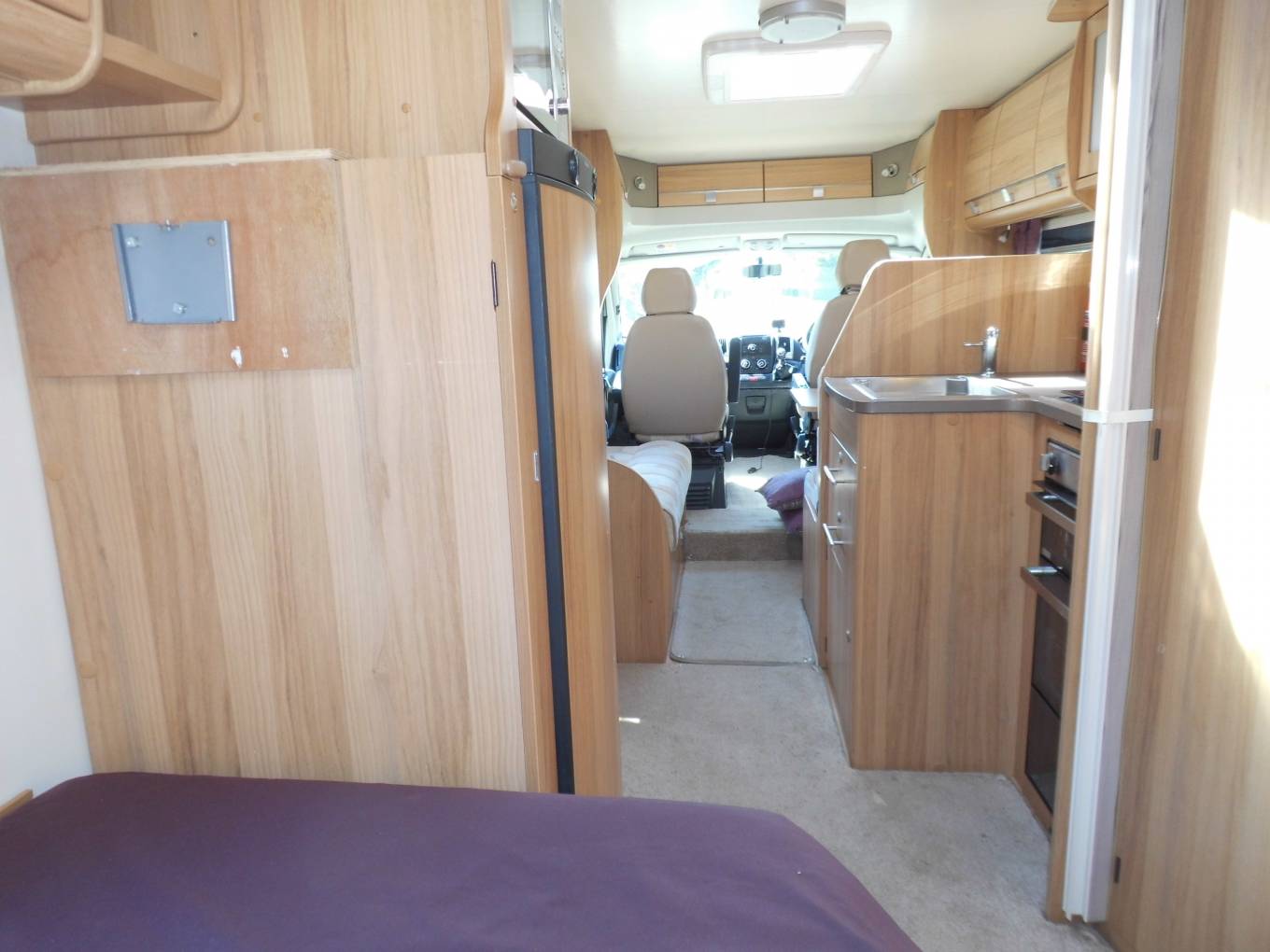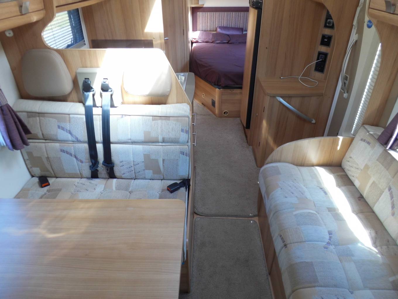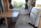 At the rear is a fixed French bed measuring approximately 70 x 51 inches so need for the hassle of making up and putting the bed away each day. Above the bed are numerous lockers and there is plenty of storage space underneath the bed which can be easily raised. The bedroom aslo has a couple of in-built music speakers and a roof light throws in plenty of natural light.