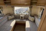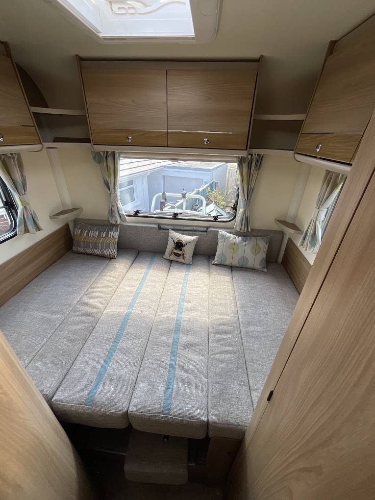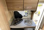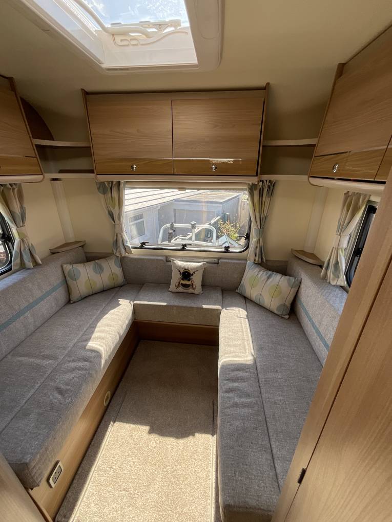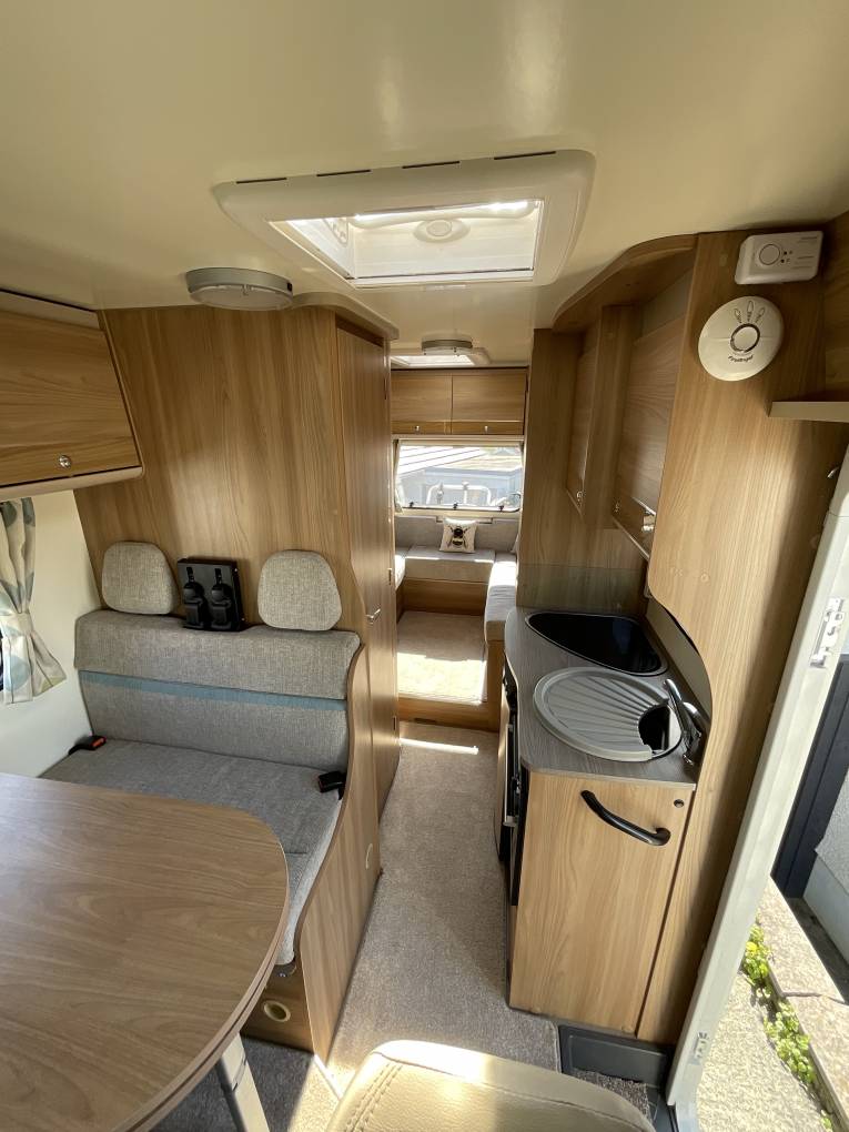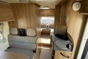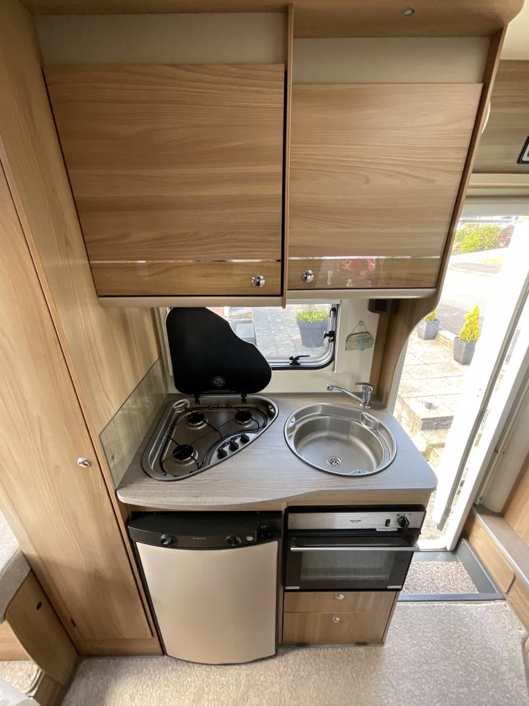 Mid habitation area is very modern and is one that offers plenty of natural light and here you have the kitchen area that is next to the habitation door which gives you extra ventilation when cooking up a hearty meal for the family. You have all the modern appliances you need for your travels that include; fridge with freezer space, x3 gas hobs, combi oven and grill, sink with chrome mixer tap and again more storage space.