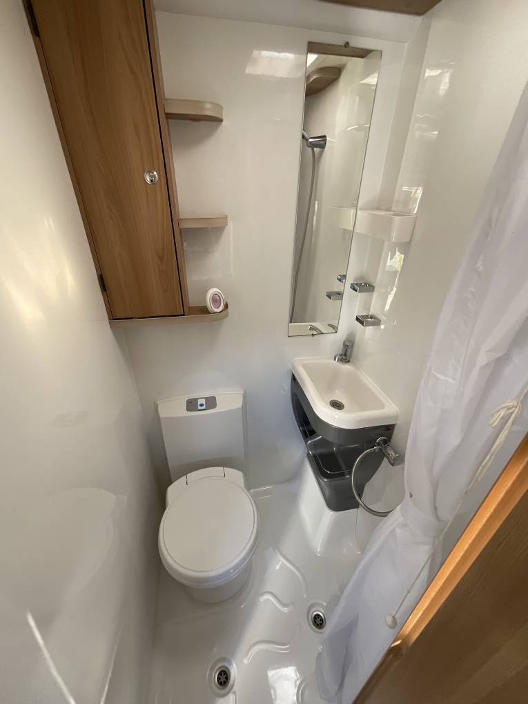 For the layout we start at the Rear with the much sort after Rear Lounge. This area will allow you to take in the views, relax and also within a minute transforms into a large double bed. This area also comes with surrounding storage, a wardrobe space and easy access to the washroom. There you will find everything you need to refresh and recharge after a day of adventure. Includes a toilet, washbasin, vanity mirror, shower and more storage space.