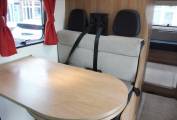 Based on the Peugeot Boxer 2.2 six-speed manual with only 15,331 miles, the ride to your destination is silky smooth. Pull up on your pitch swivel the driving seats and enter the half dinette sitting area which has a further two seat belts allowing four people to travel in total.