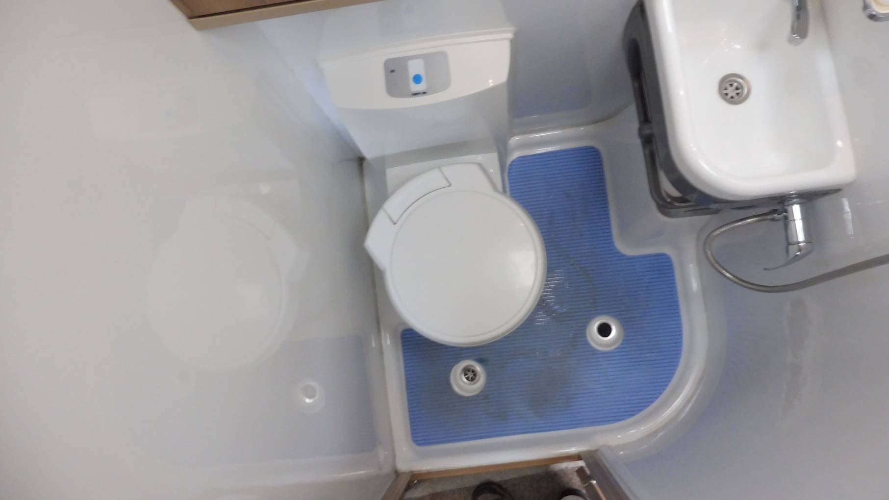 Moving rearwards there is a compact kitchen comprising 3-burner hob, combi oven, microwave, sink and three-way fridge; everything you might need for rustling up a snack or preparing the main evening meal. Opposite which sits a compact washroom incorporating vanity sink unit, cassette toilet and shower over.