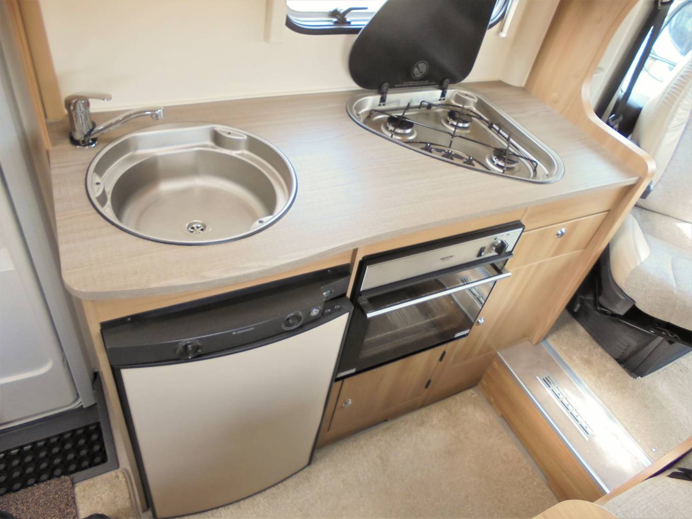 to a double bed - electric drop-down double bed over the dinette – central kitchen