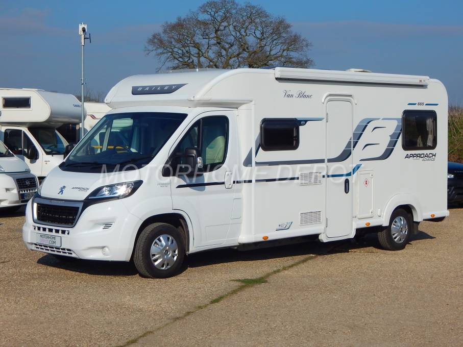 - What an opportunity to own this fabulous Bailey approach Advance 665, 2017 model, 6 berth with 6 travelling seats, the perfect family motorhome! On a Peugeot 2.0 TDI with 130 BHP, so plenty of power available, 6 speed manual gearbox, full service history, 11,450 miles and just One Owner from new.