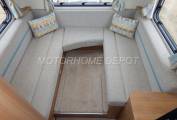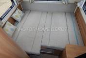 - The main feature though is the very sought after u-shaped rear lounge, with windows on 3 sides and a large sunroof that floods the area with plenty of natural daylight and fresh air. This area makes up into a very large double bed in the evening, there are upper aircraft style lockers and under-seat storage available. A Vision Plus TV with built-in DVD Player is included.