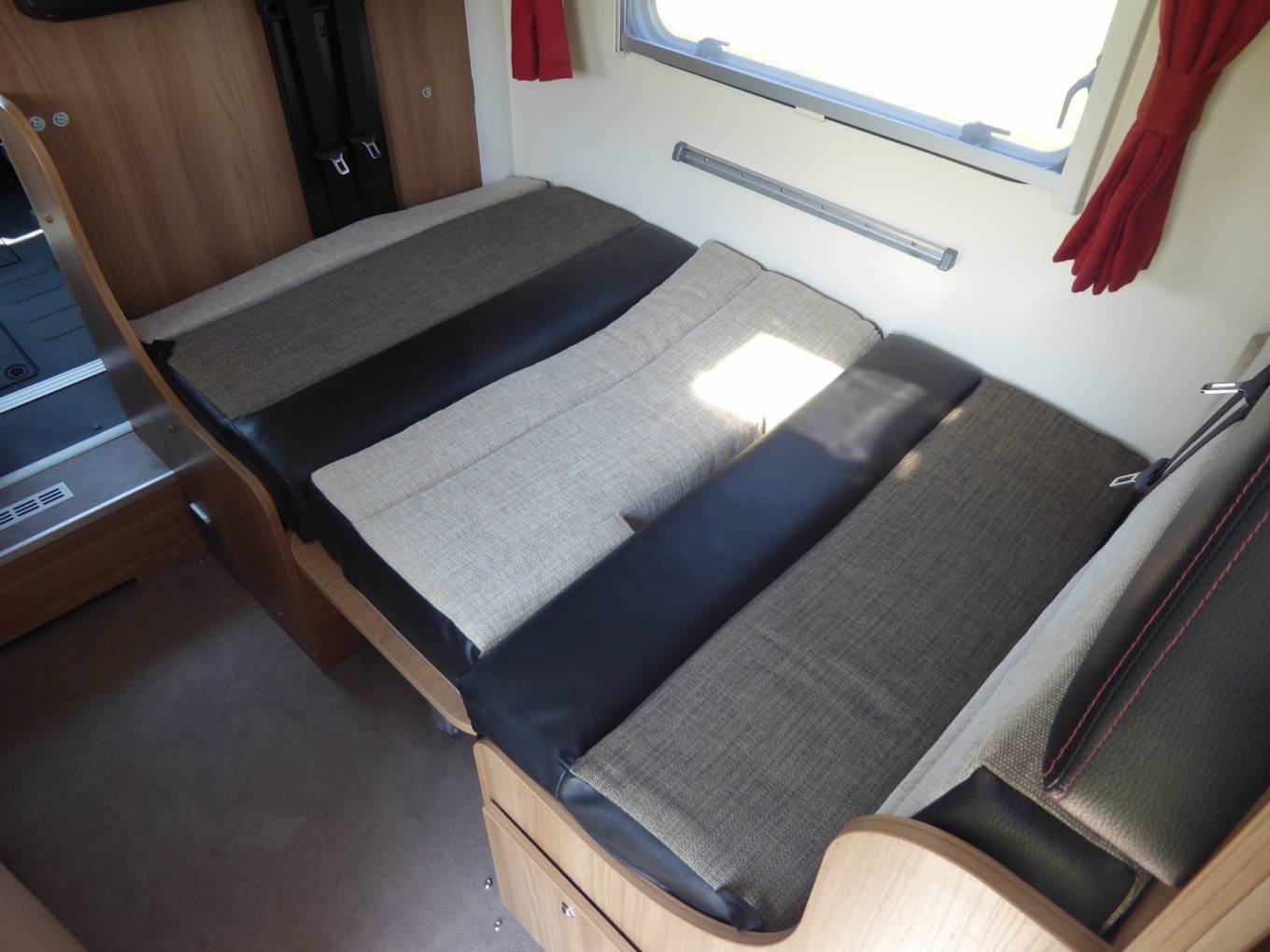 Behind the cab is an offside full dinette with four additional 3-point seat belts. This can be converted into a double berth. Swivel cab seats can be utilised to augment this leisure/dining area.