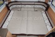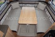 The main feature of this beautiful motorhome is the sought after u-shaped rear lounge, 3 large windows and a large sunroof flood the lounge with natural daylight. Beautiful half-leather with contemporary fabrics and the lounge area converts to a very large double bed in the evening. Upper aircraft style storage lockers and under seat storage available.