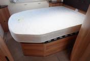 The main stand out feature of this gorgeous vehicle is the fixed rear island bed which means no clambering over your partner at night if one of you needs the loo and no making up and putting the bed away every day. There is plenty of locker and cupboard space in the bedroom as well as additional storage space underneath the bed. A large skylight means that plenty of natural floods in and the windows are all fitted with curtains, blinds and fly screens.