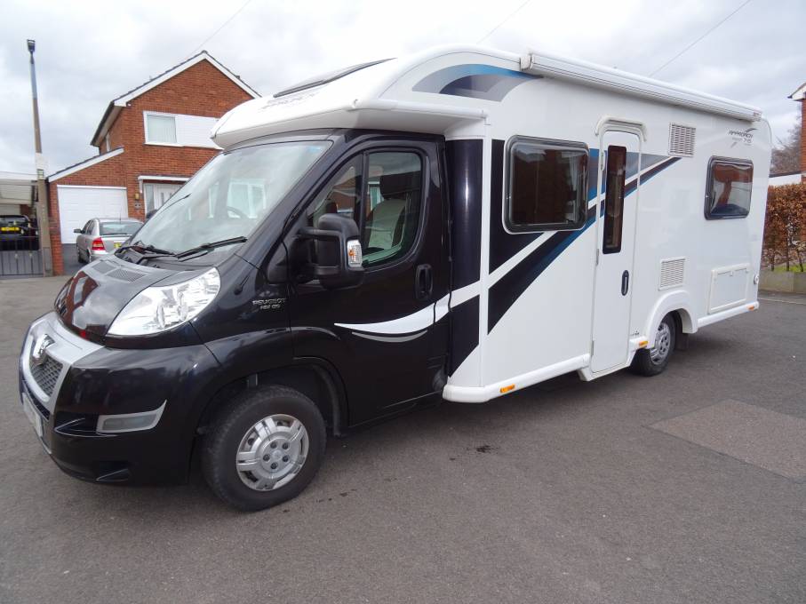 Here at Motorhome Depot, we are delighted to be able to offer a 2014 edition of a Bailey Approach Autograph 745 for sale. This stunning 4 berth, 4 belt low profile motorhome is based on the popular Peugeot chassis and has the 2.2 litre Diesel engine with 6 speed manual gearbox. This is in fantastic condition for its year and is certainly not to be missed. Upon entry to the motorhome you are greeted with a both spacious and very well equipped kitchen area that is comprised of 3 burner gas hob with additional electric ring, grill, oven, hand wash basin, microwave oven and a 3 way fridge with large ice box. To the left is the lounge area, this consists of side bench as well as L shaped seating with additional travelling seats. This area also has a fold away table if required and converts to a good sized and comfortable double bed. There is also 2, 3 point travelling seats for any additional guests. At the end of the motorhome we have a large French style bed that includes great storage options both above and below if required. Next to this is a generous washroom that boasts separate shower enclosure, vanity style hand wash basin and cassette toilet. This stunning motorhome also benefits from a Road Pro satellite system, top of the line Aldi heating and Tow bar. Please contact a member of our friendly sales team for further assistance.
