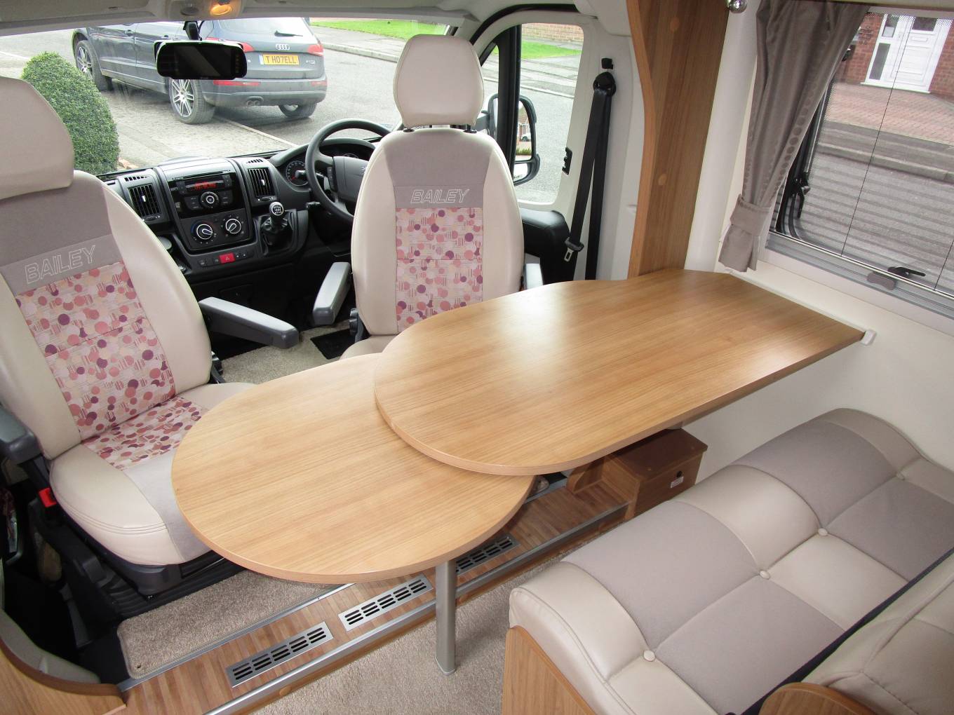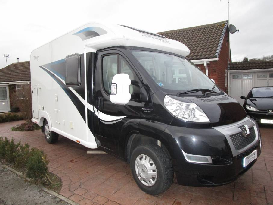Here we have a beautiful example of the extremely desirable Bailey Compact 520 based on the Peugeot Boxer 130 with manual Gearbox. Coming in at 6 metres the 520 is perfect for those looking for the quality and design you would expect from Bailey in a compact body that retains all the usability of its bigger counterparts. The cab is light and airy thanks to a large overhead skylight and benefits from twin swivel captains chairs along with Air Conditioning and Cruise Control. Moving back we have a dining area that when utilising the swivel seats can easily accommodate four and also benefits from two additional travelling seatbelts. The Kitchen area is well equipped and features a three burner hob, fridge with ice compartment and combination oven and grill while also fitting in plenty of storage space. The washroom is well designed and benefits from a cassette toilet, shower and hand wash basin. To the rear of the vehicle is the large fixed bed which is easily big enough to comfortably sleep two adults and is housed above a large garage which provides an abundance of storage for those longer European trips. This vehicle also features Twin reversing cameras, Alde heating and Bike rack mounting bars. For further details or the extended picture file please call Tom on 07572398972