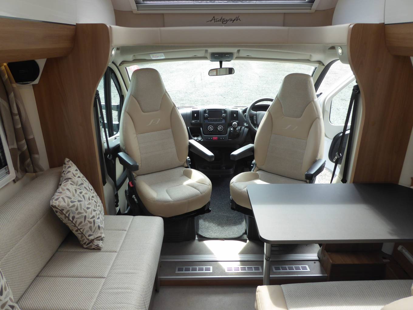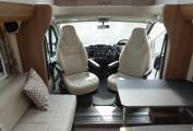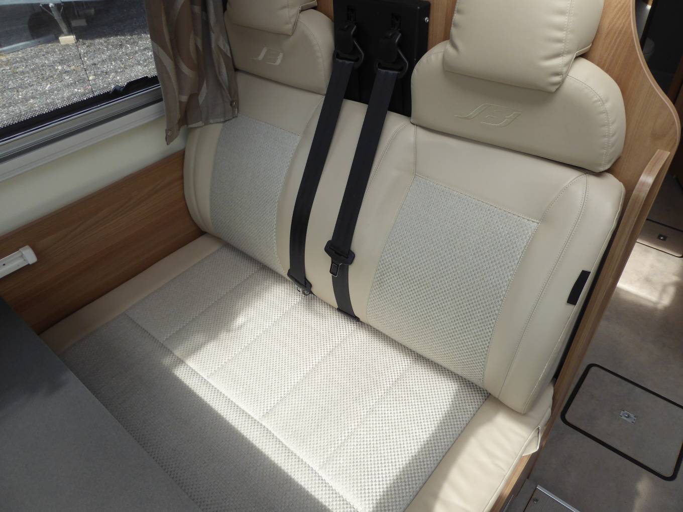 In hald f dinette there are 2 travelling seats, with full seatbelts and by use of the 2 swivel seats, small sofa next to the habitation door, table extension a nice area for entertaining is created.